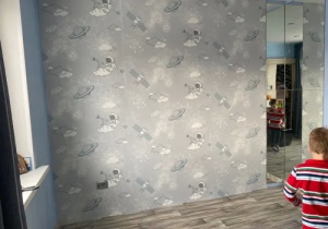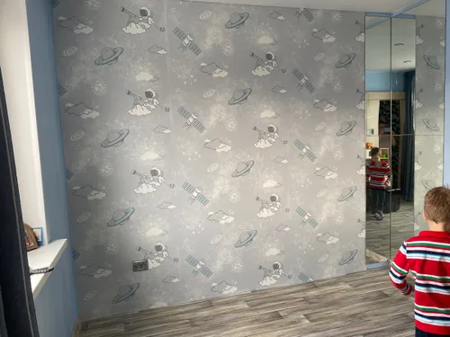 Недостатки: При поклейке обоев выяснилось, что на стыках брак, очень большие засветленные участки, сразу бросается в глаза.