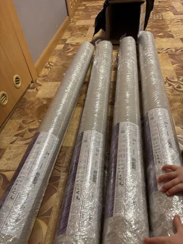 Пришли обои хорошо запакованы в коробку,еще и пленкой перемотан каждый рулон.Цвет на картинке передает,как в реале,но честно говоря,когда выбирала,ожидала будут светлее.Начали клеить буквально на следующий день,как получили.Поначалу одну стену наносили клей только на стену,очень намучались выгонять пузыри.Скажу,что было не просто.Следующую стену,наносили клей и на стену, и на обои.Лучше стали ложится. Обои нужно клеить стык в стык,в нахлест они никак не приклеиваются,даже если миллиметр наезжают, там уже обои поднимаются.Когда высыхают, пузыри не видно становится.Текстура у обоев в виде ткани,смотрится дорого,если поклеены в стык,даже не видно швов.Обои красивые,но сложные в поклейки,лучше доверить профессионалам это дело.До этого опыт был.С этими прям намучались.