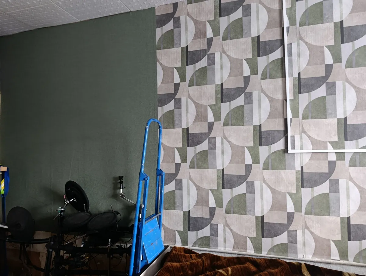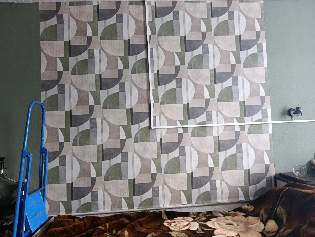 Клеили на несравнимо кривые стены на старые обои. Многие неровности закрыли, но все тут и не закроешь. Сами обои плотные, просто замечательные. Пестрые обои клеили без подгона, ибо не поняли как подгонять))), но выглядит все равно супер.