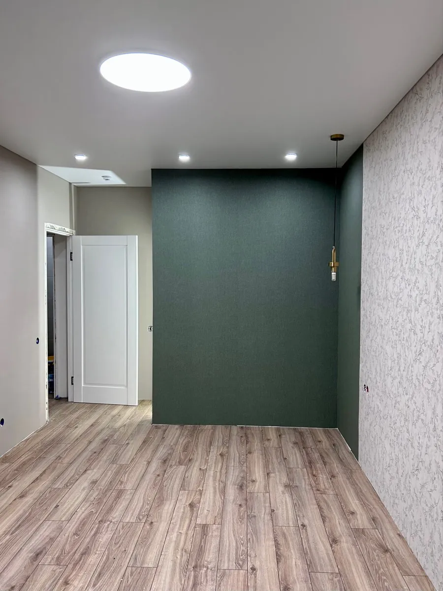 Из трех расцветок: мокко, зеленые и кремовые, зеленые клеились легче всего и стыки получились совсем незаметные (при поклейке внахлест с разрезом). Цвет и фактура - любовь!