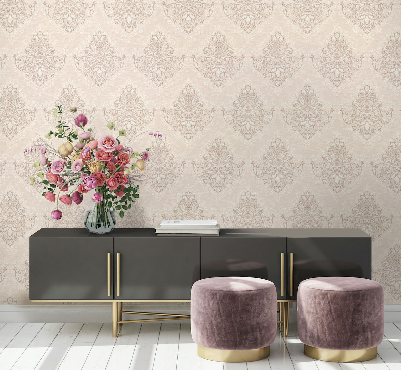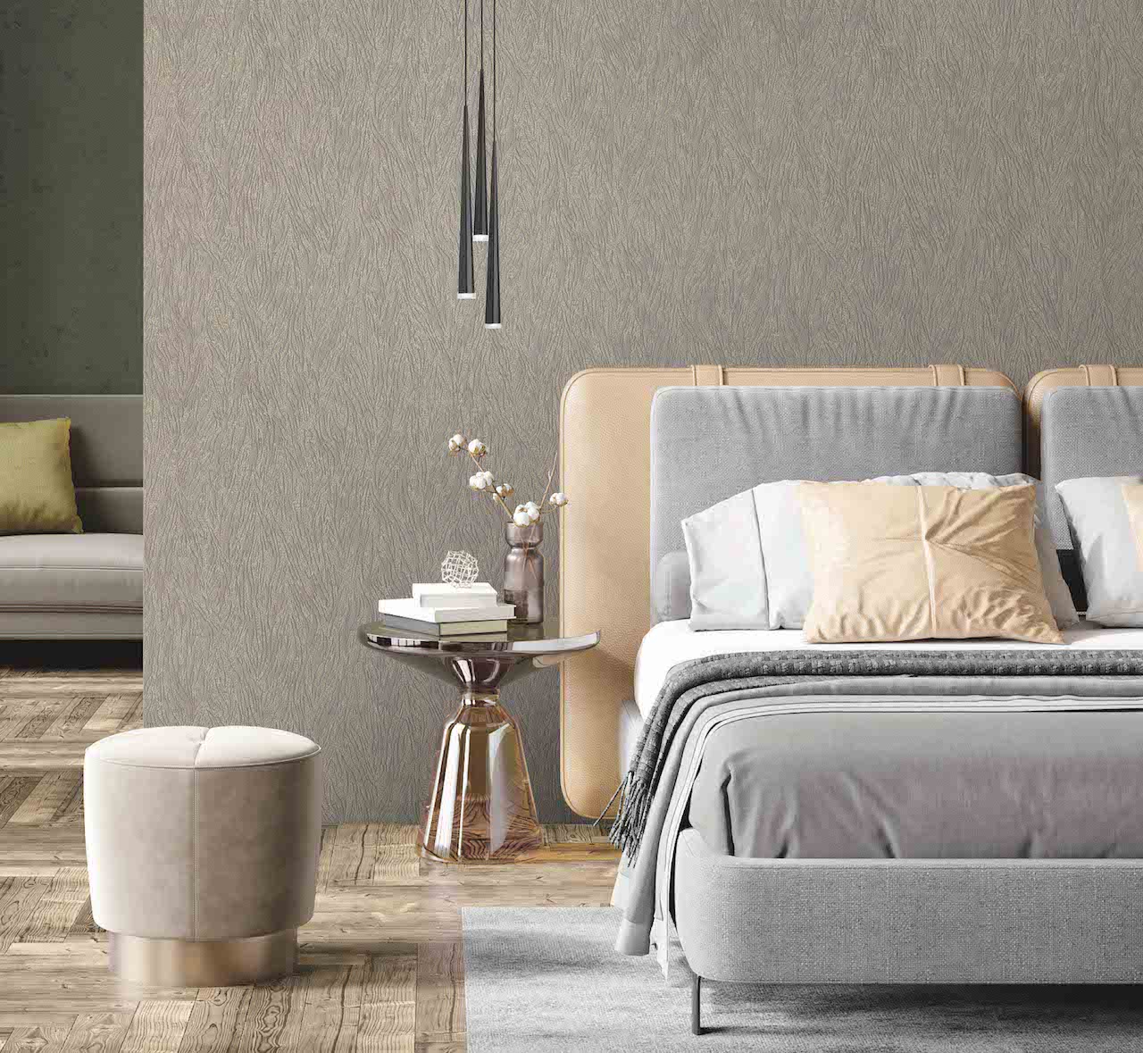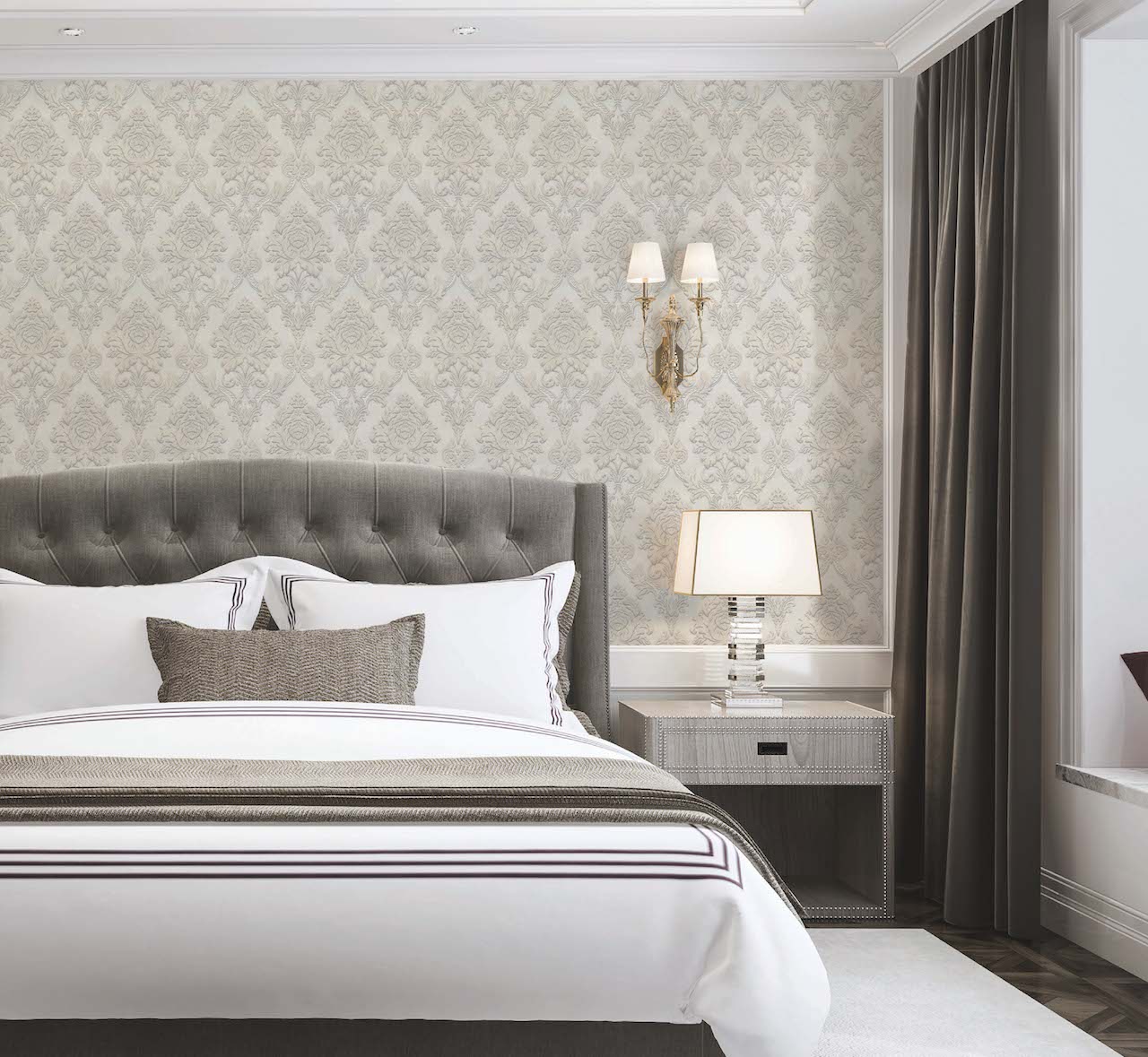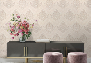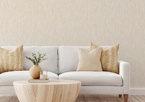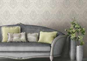 В линейке обоев DOMingo представлены и классические орнаменты, и более современные узоры, например, рисунок, имитирующий камень.