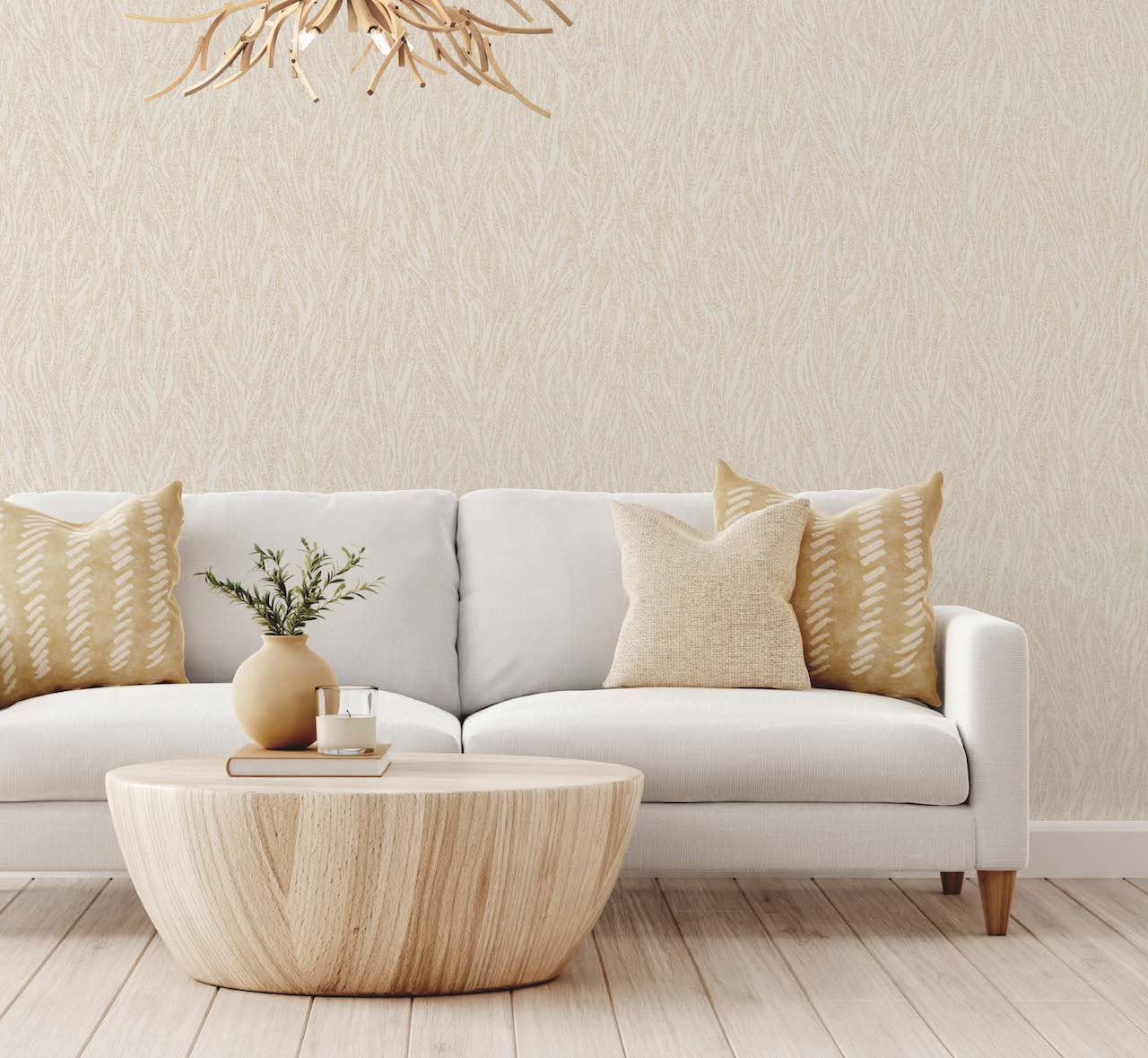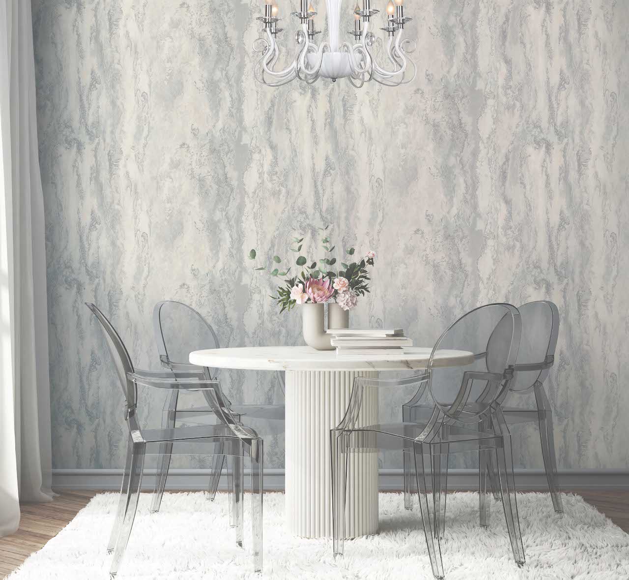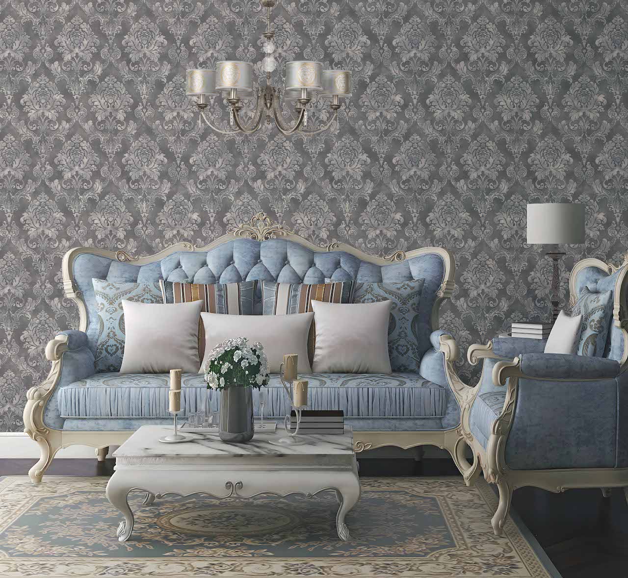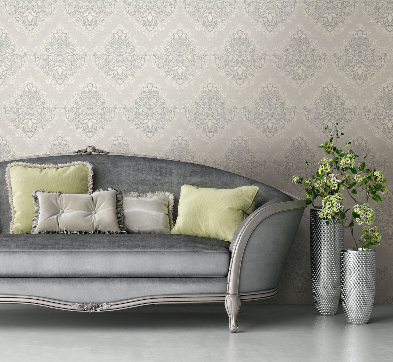 В линейке обоев DOMingo представлены и классические орнаменты, и более современные узоры, например, рисунок, имитирующий камень.