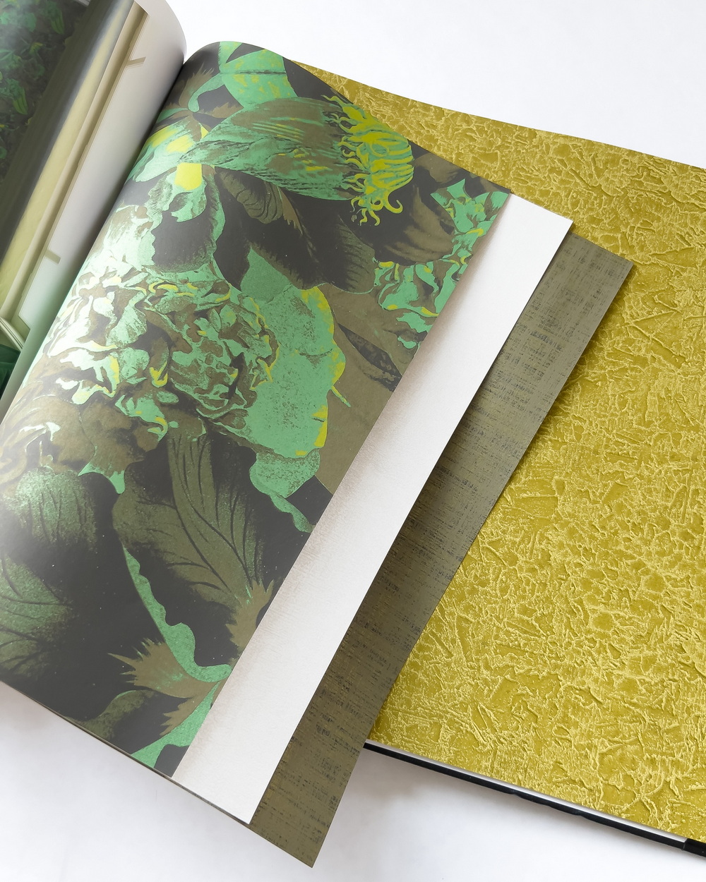 Havana — прочтение темы джунглей в интерьере от бренда Khroma. Это настоящий взрыв цвета: в обоях сочетаются насыщенный фуксийный, черничный, ультрамарин и зеленый. Тропики здесь предстают в разных ипостасях: игривые и декоративные изображения деревьев, экспрессивные листья и цветы, геометрический узор из миниатюрных пальмовых листочков.