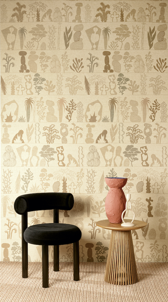 Отделочный материал, основу которого составляет неотбеленная бумага, флизелин или техническая марля, а покрытие натуральные материалы и волокна растительного происхождения.