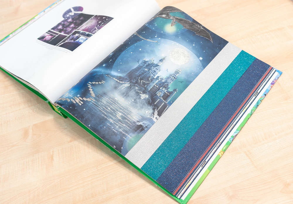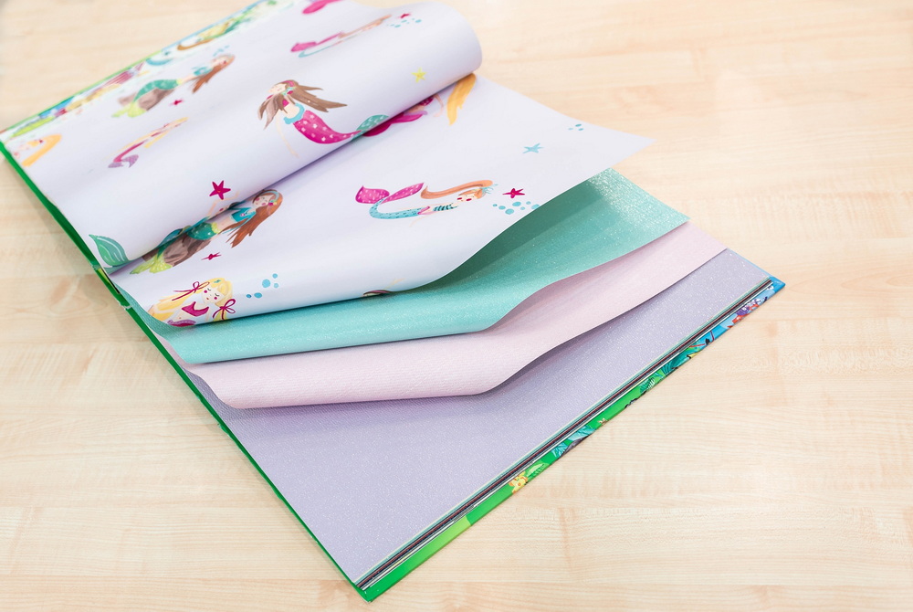 В детском каталоге Imagine Fun 2 от Arthouse освещен весь спектр детских фантазий. Русалки с разноцветными хвостами весело переговариваются между собой, единорог с серебристой гривой бьёт копытцем по радуге, а огромный дракон пролетает над подлунным замком. Чтобы подчеркнуть настроение, создатели обоев не ограничились цветом, а добавили на страницы каталога разноцветный глиттер.