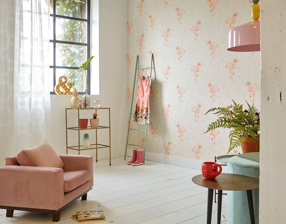 «Время танцевать!» — гласит надпись на каталоге Cozz от A.S.Creation. Кокетливые сердечки, фламинго в шляпках, обилие розового и нежно-ментолового цвета настраивают на игривый лад, и если не грозят каждодневными танцами, то точно сбавят градус серьезности в Вашем интерьере. Мы и фабрика A.S.Creation предлагаем использовать обои не только в детской.