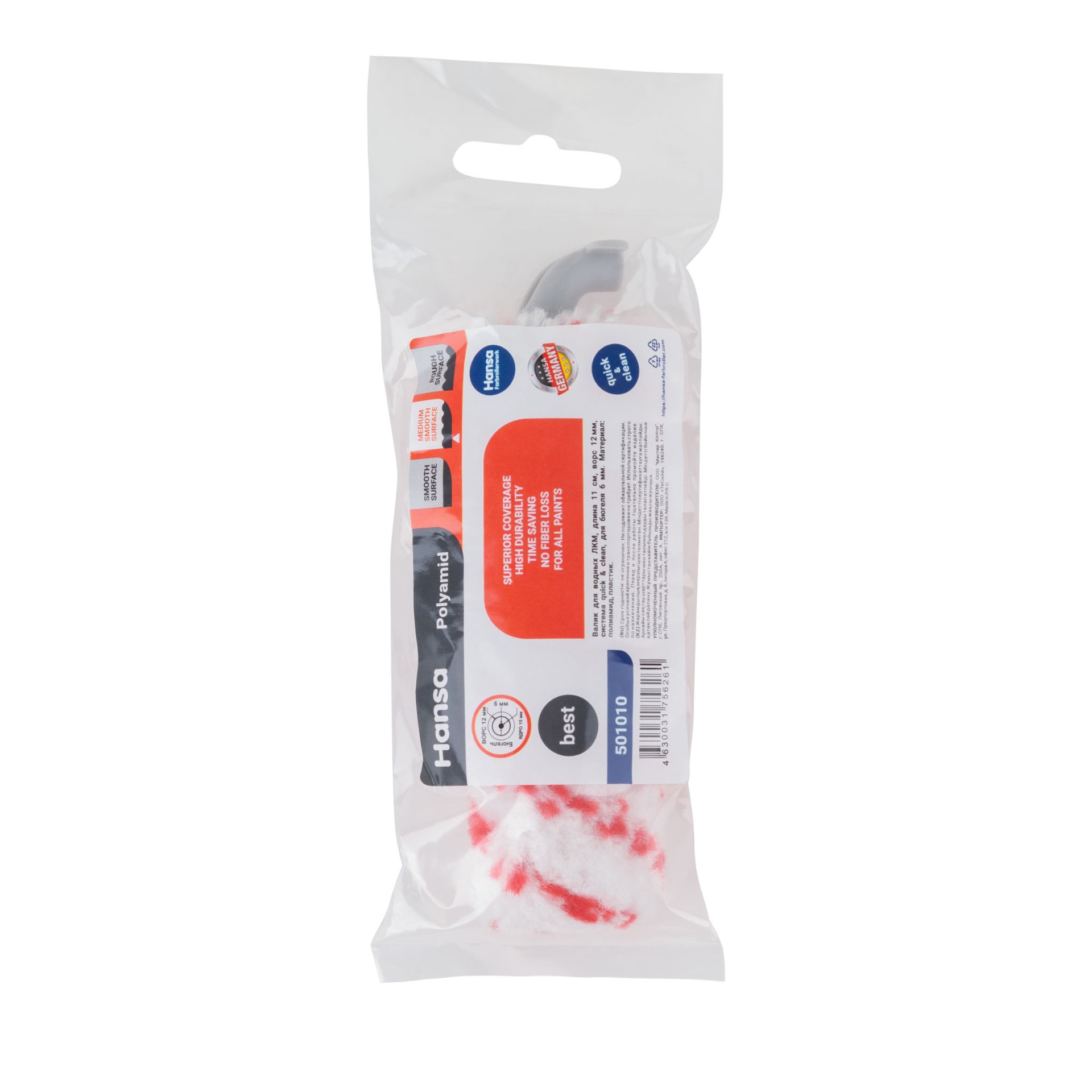 Валик Hansa Polyamid 12, 100 мм, ядро 15 мм, система quick&clean