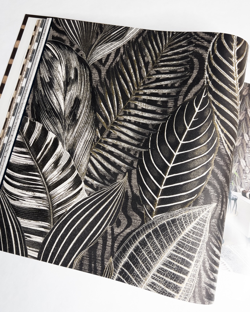 У фабрики Rasch вышла третья часть коллекции African Queen! Рядом с уже знакомыми фактурами кожи появилось нечто новое: тропические листья, сквозь которые проглядывает зебровый принт, гипнотический «деревянный» узор и текстильный орнамент, без которого не могла обойтись африканская коллекция.