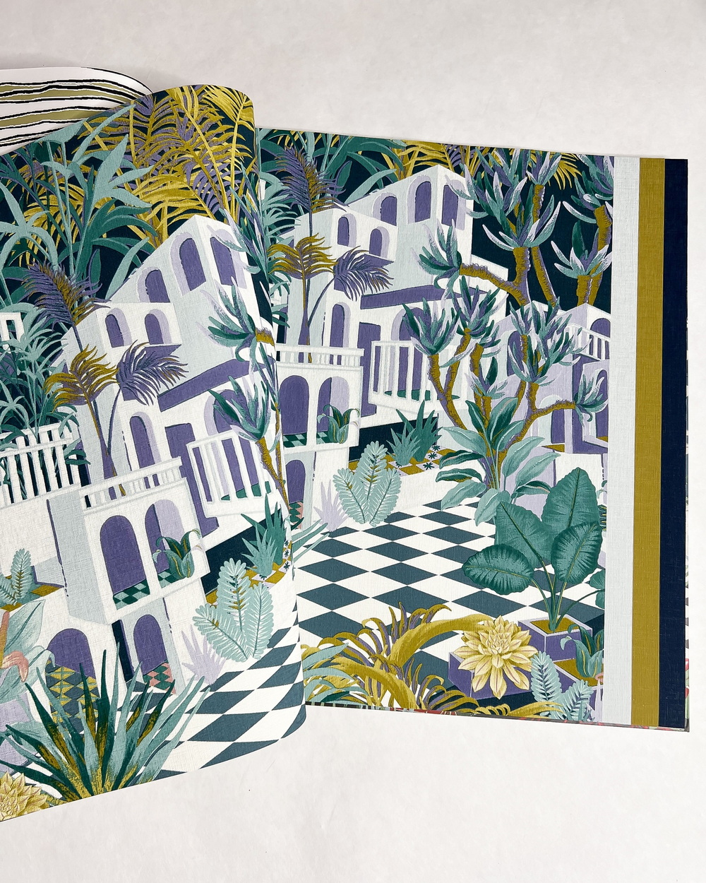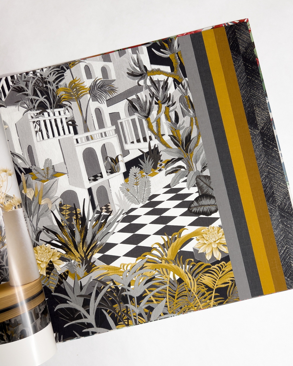 Tropical House — коллекция от Rasch. Тропики в исполнении известной немецкой обойной фабрики, яркие и притягивающие взгляды. Кроме необузданной растительности, в каталоге поселились сочные геометрические мотивы и интригующий принт, напоминающий лабиринт из роскошных вилл, затерянных среди джунглей.