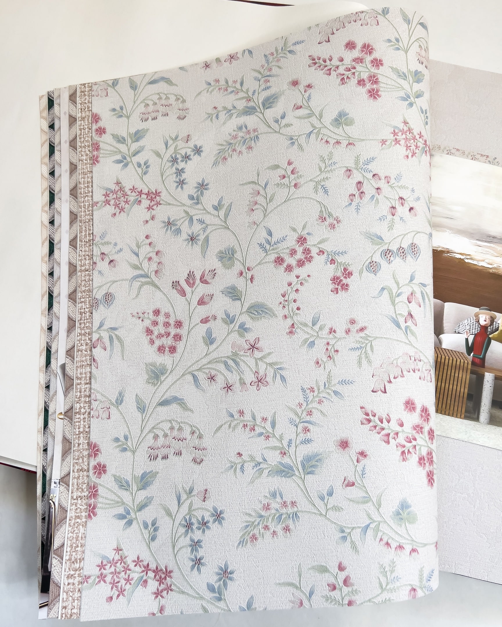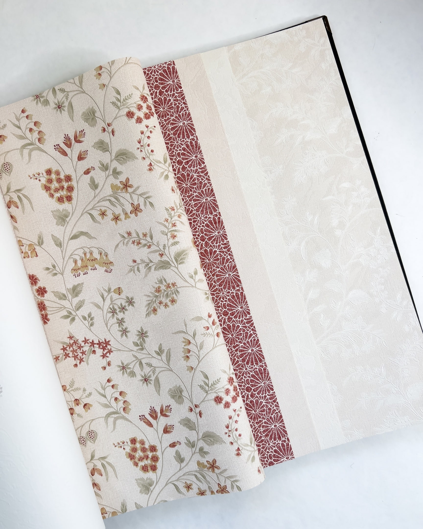 Коллекция Marisa от Bernardo Bartalucci встречает нас принтом с озорными ромашками и уютным орнаментом из вьющихся растений. Цветочные мотивы дополнены обоями с полосой, винтажным геометрическим узором и обоями с мелкими ромбами. Насыщенные бордовый и изумрудный цвета соседствуют здесь с пастельными оттенками.