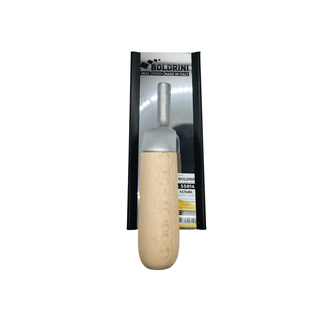 Кельма Boldrini с зеркально-гладкой поверхностью, с деревянной ручкой, Inox 200х80мм