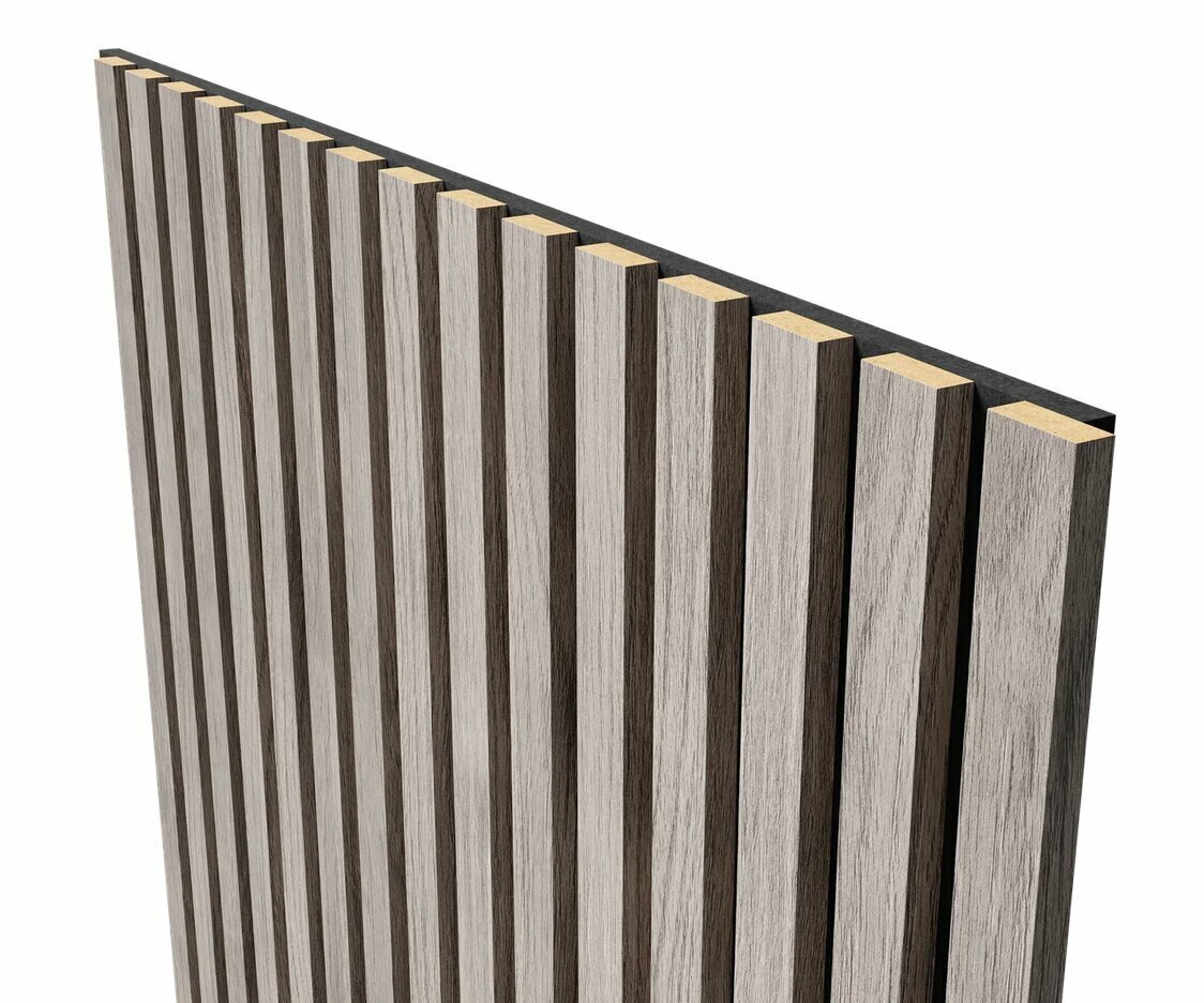 Cosca Акустическая панель, черный войлок, 600х600х19мм, рейки МДФ дуб старинный светло-серый