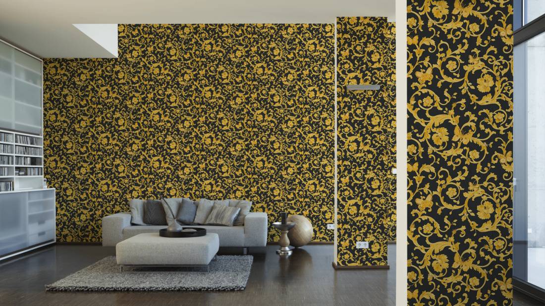 Великолепный набивной рисунок, много золота и дорогие материалы — это фирменный знак Versace, такой же, как и уже почти ставшие символом классики декоры Greek Key и Barocco.