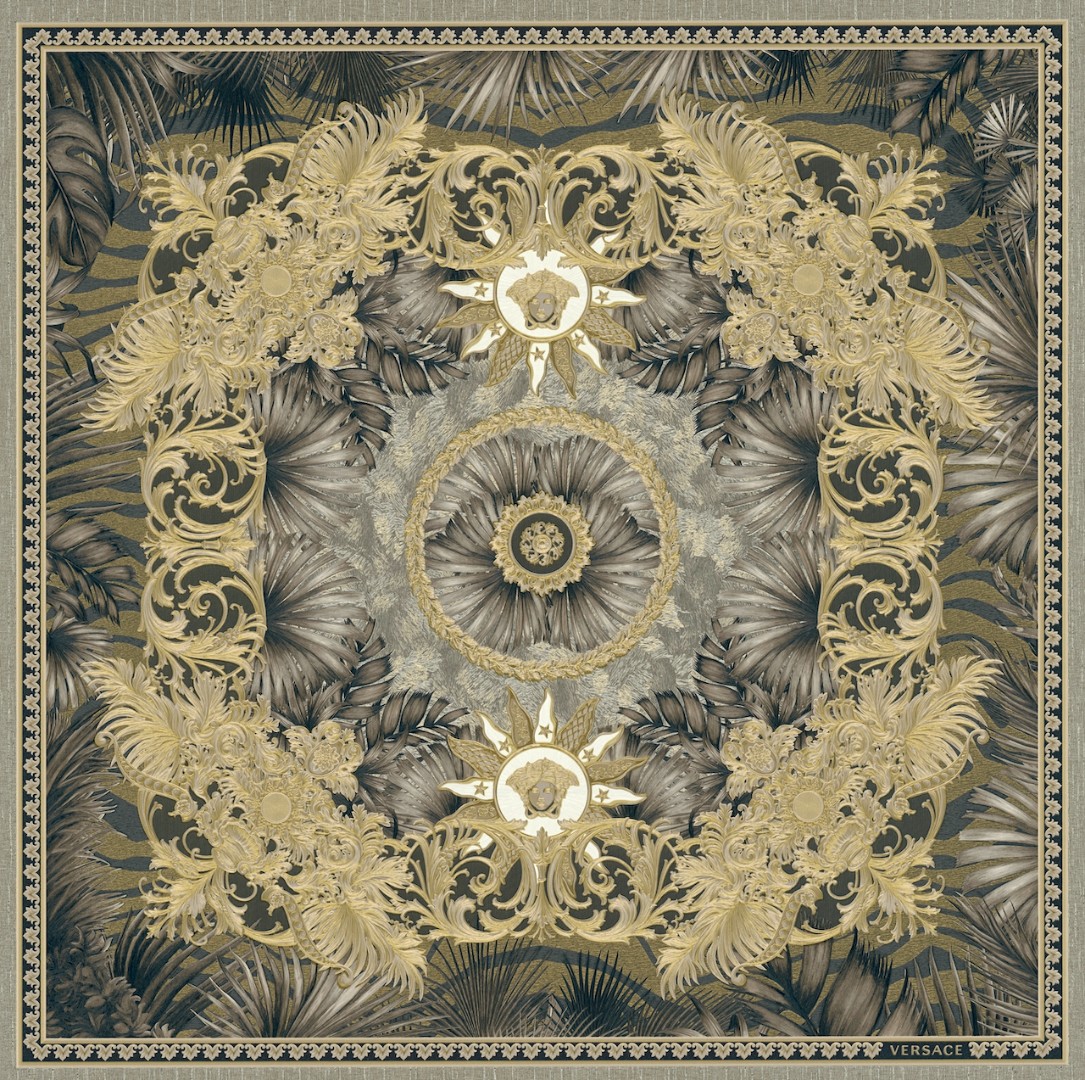 Великолепный набивной рисунок, много золота и дорогие материалы — это фирменный знак Versace, такой же, как и уже почти ставшие символом классики декоры Greek Key и Barocco.