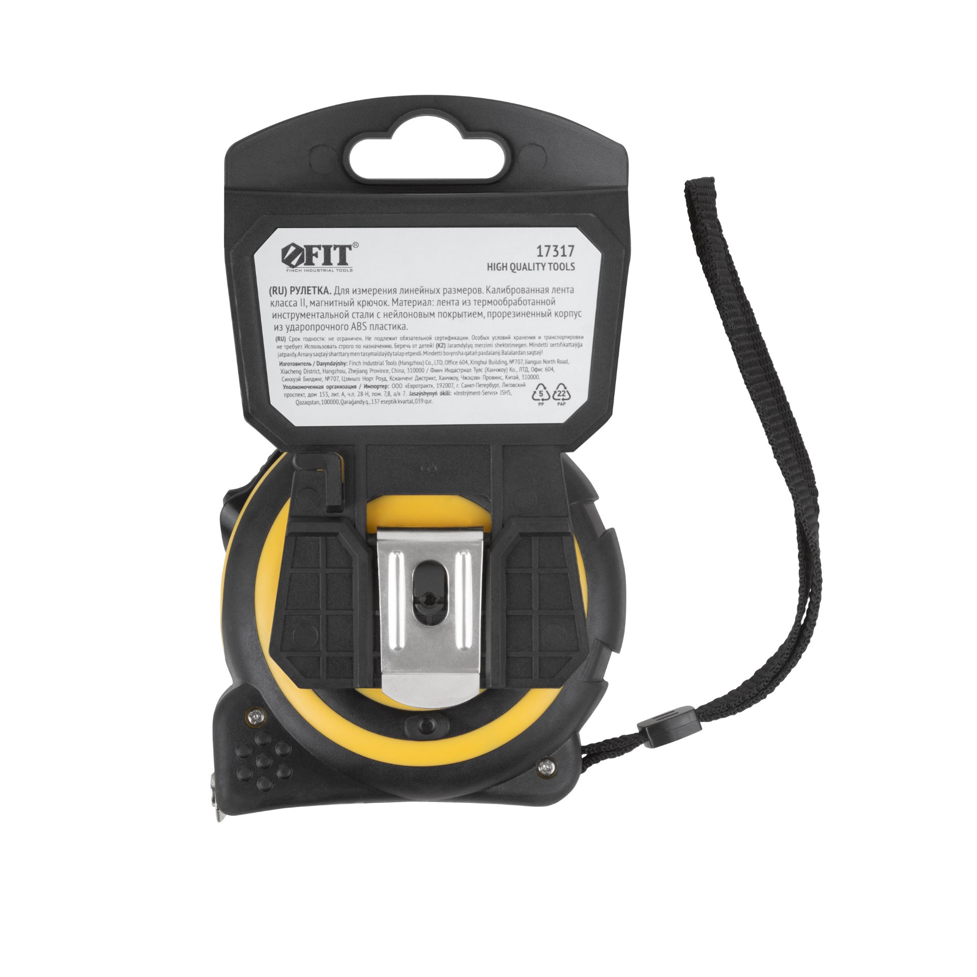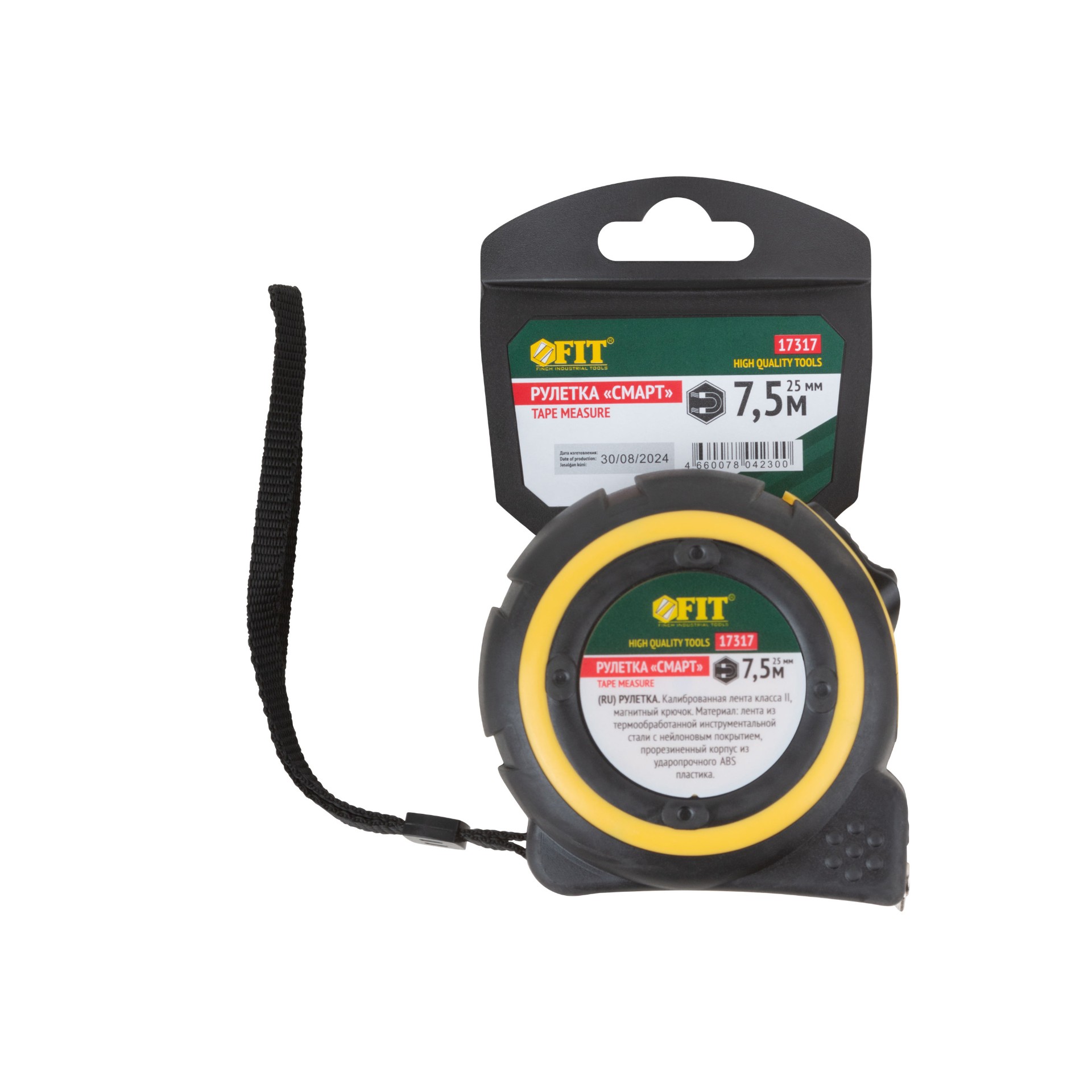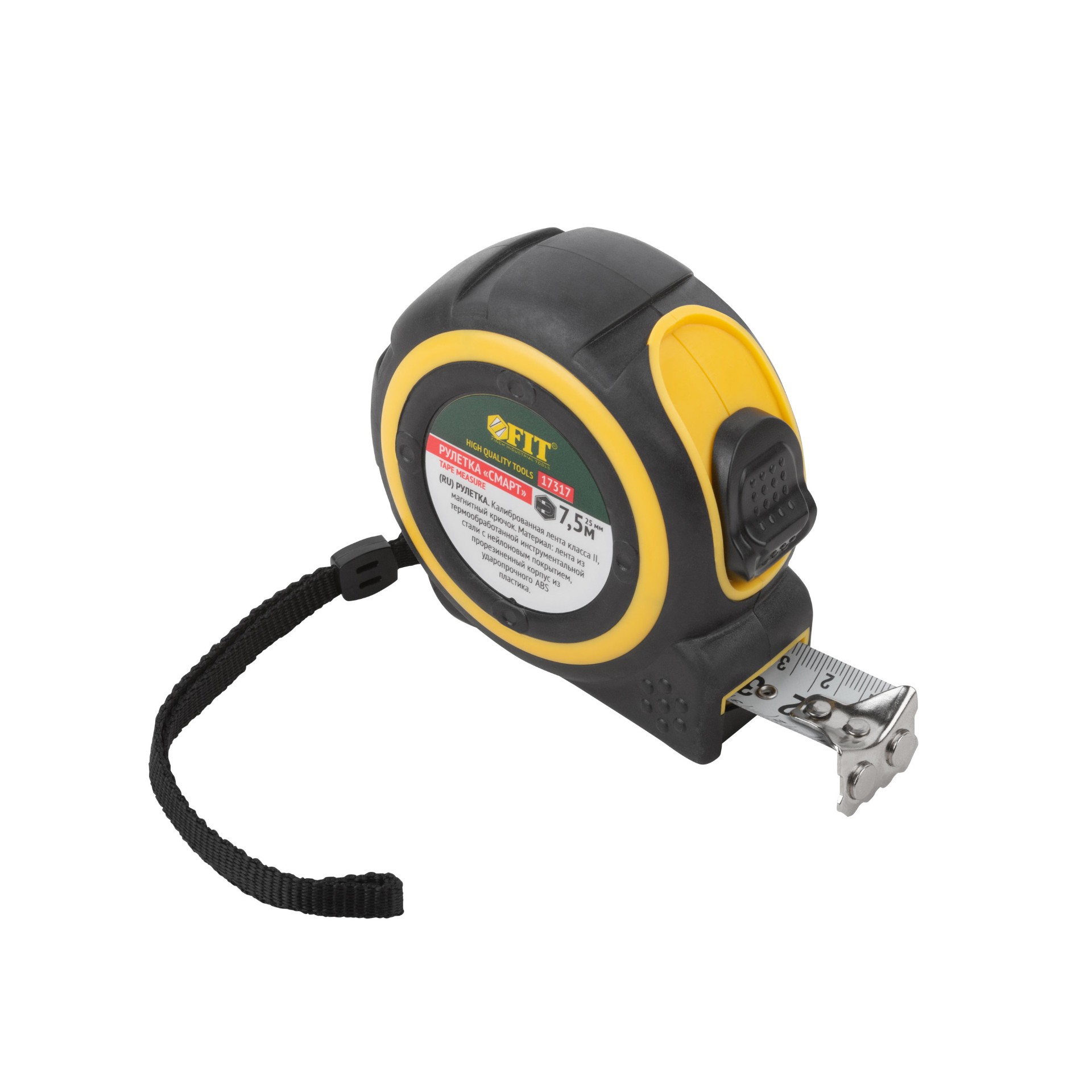 Рулетка Fit «Смарт», калибр.лента, нейлон.покр., магн.крючок, прорезиненный корпус 7.5 м х 25 мм