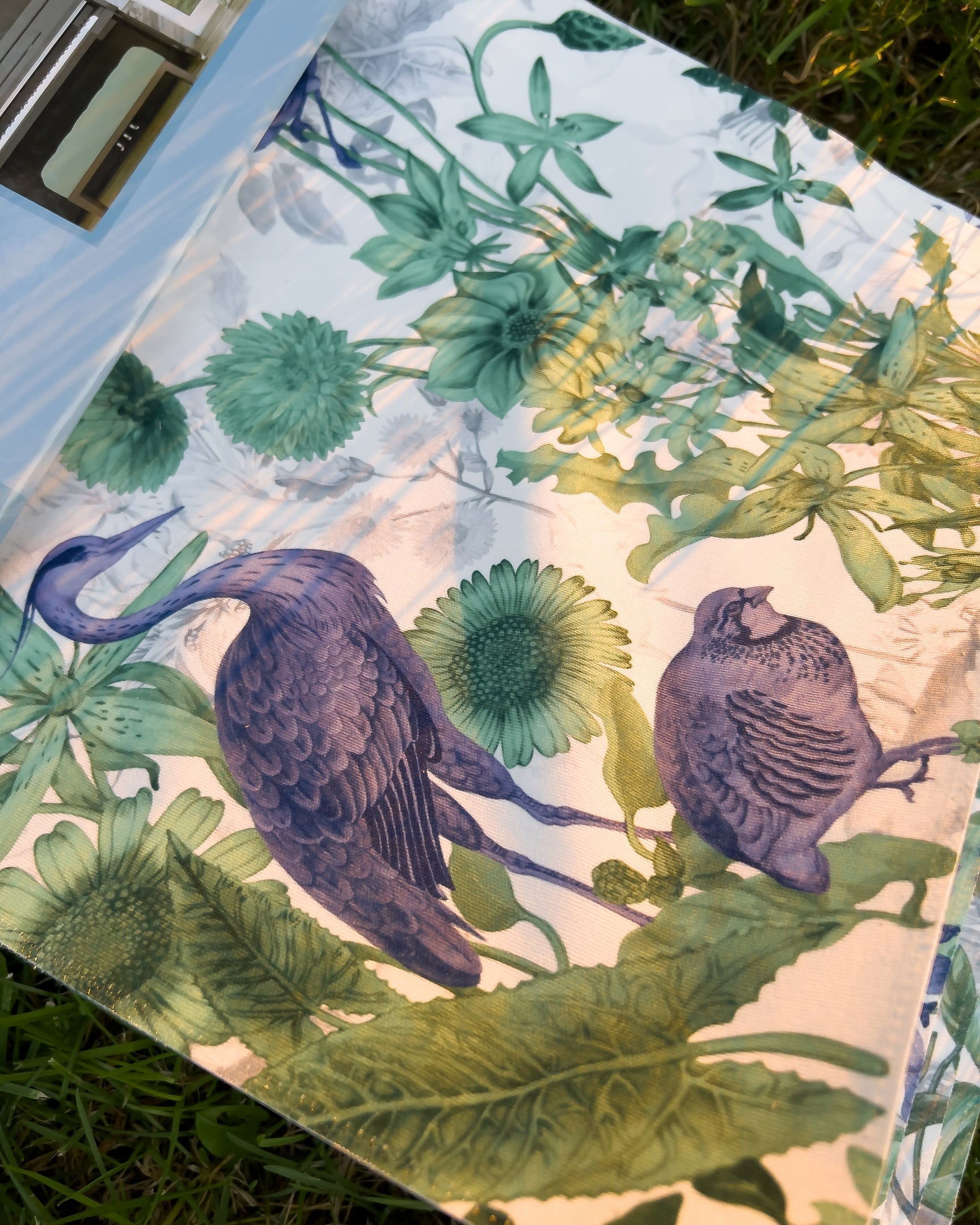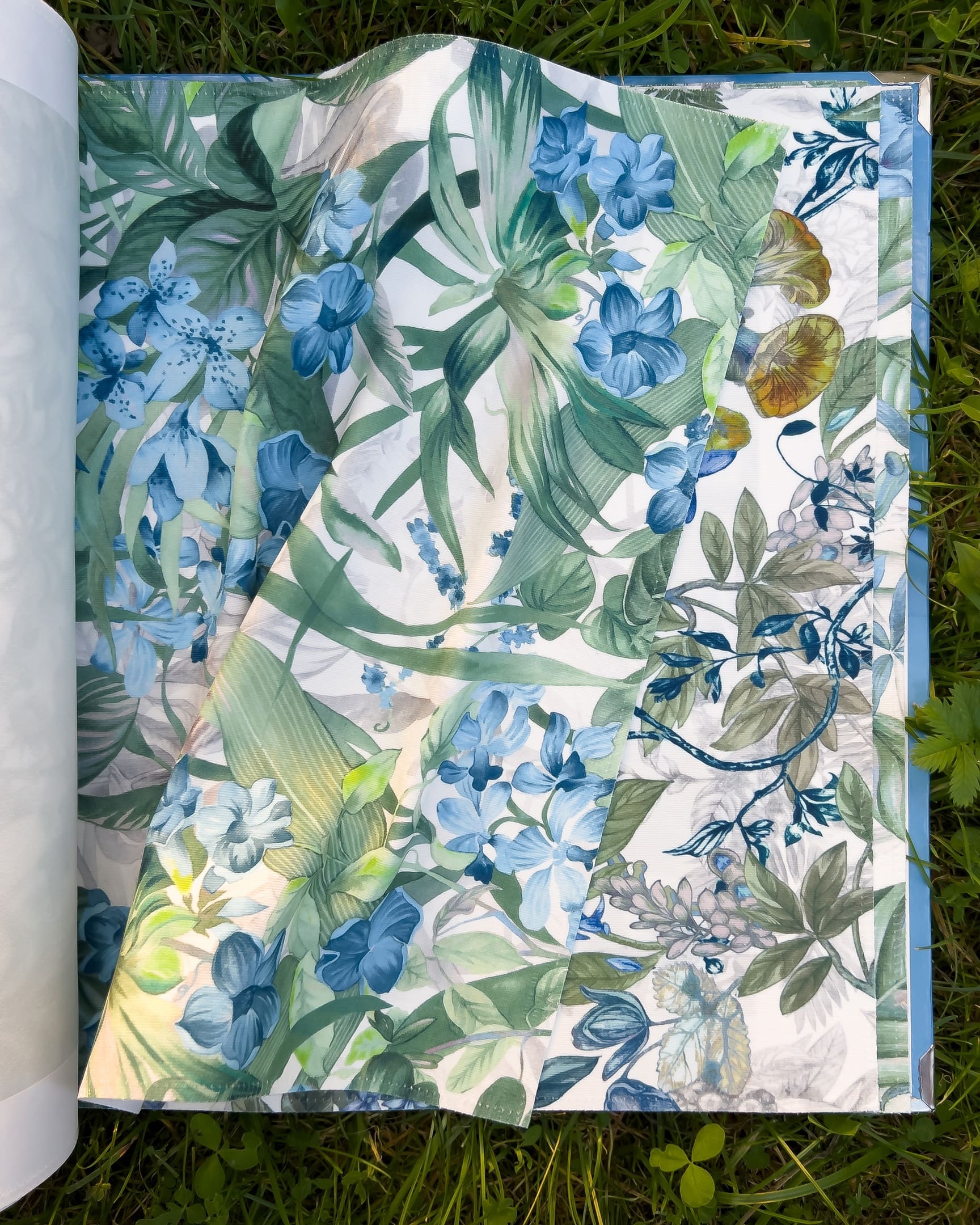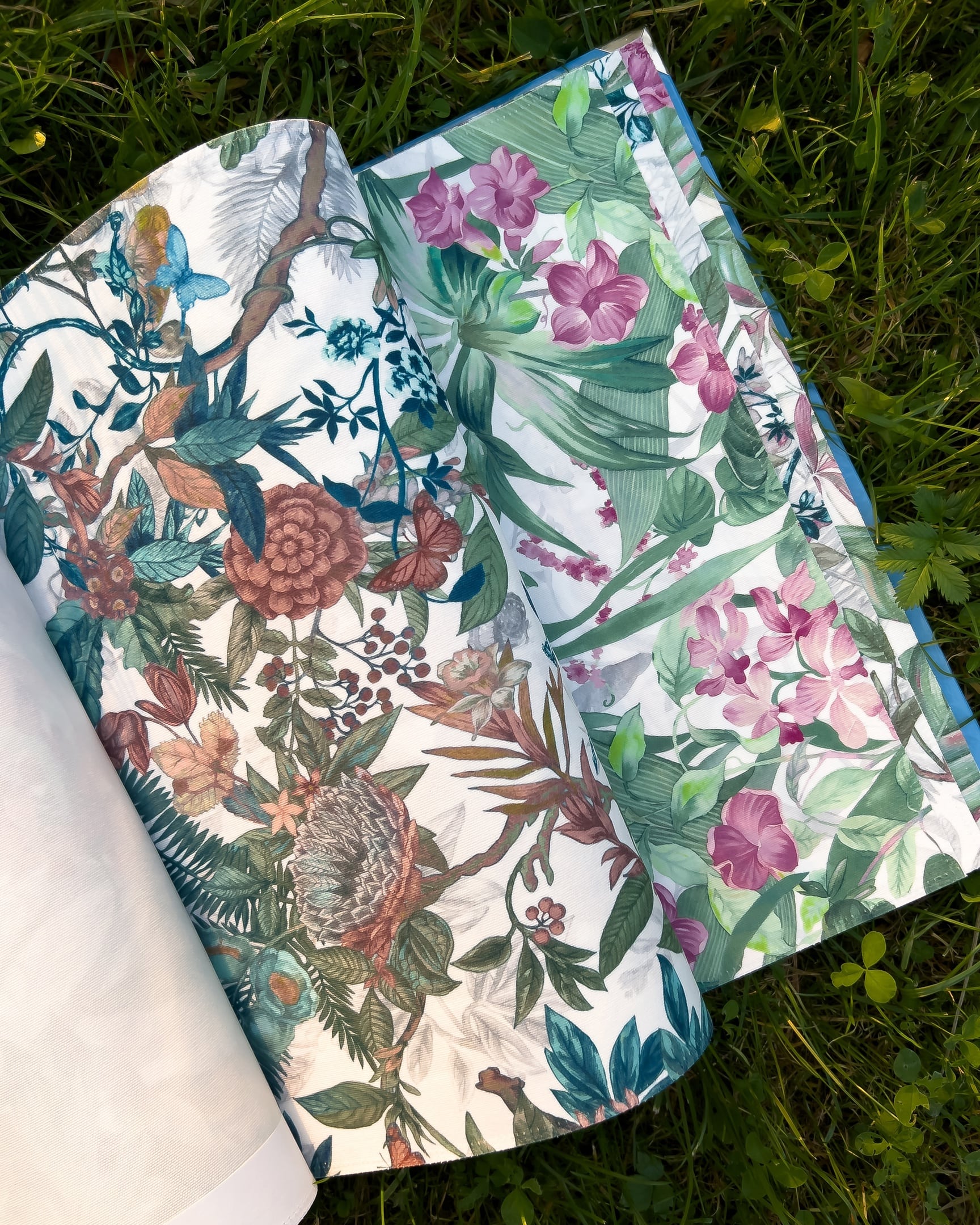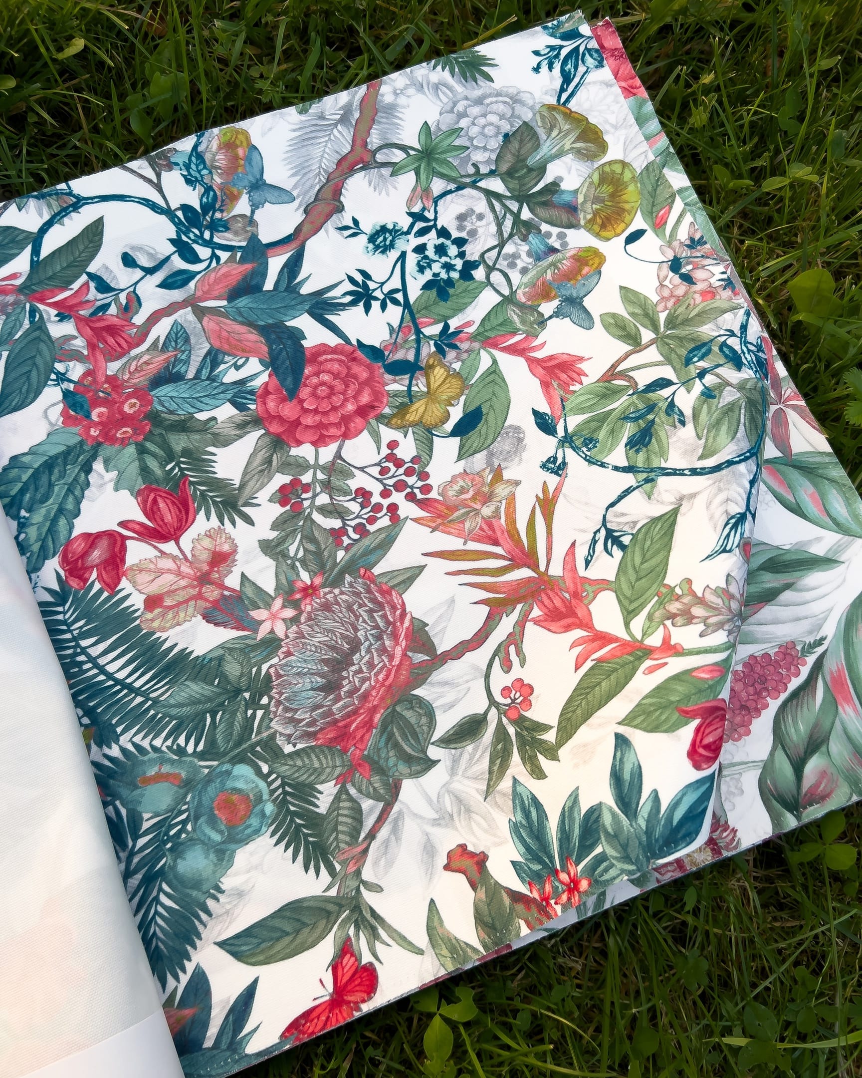 Florentina — коллекция интерьерного текстиля от 5avenue. На светлом фоне изображены яркие цветочные мотивы, птицы, бабочки, листья. Ткань не выгорает на солнце и проста в уходе.