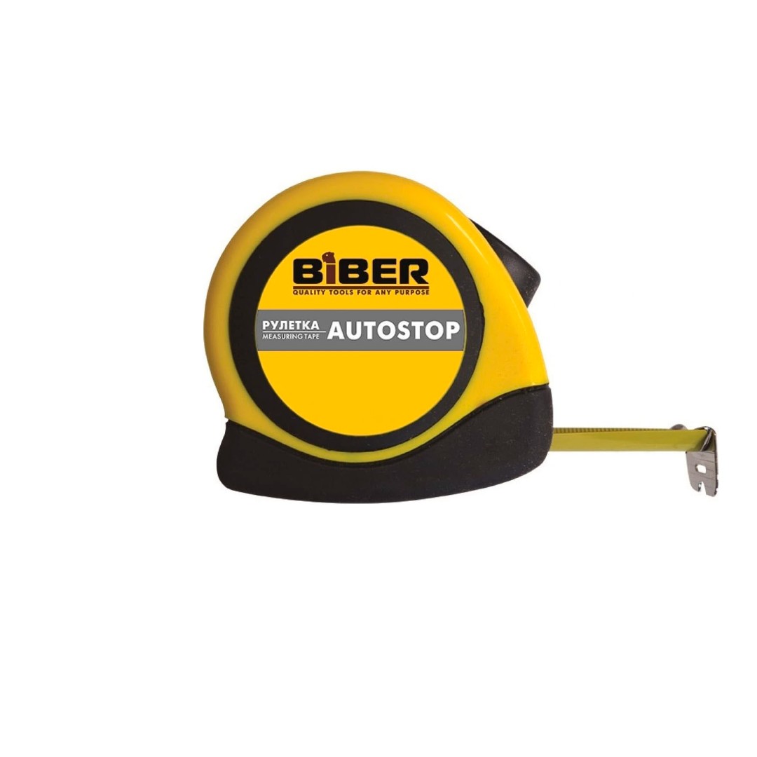 БИБЕР Рулетка Autostop, обрезиненный корпус, 3м х 16мм