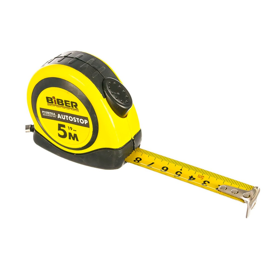 БИБЕР Рулетка Autostop, обрезиненный корпус, 5м х 19мм