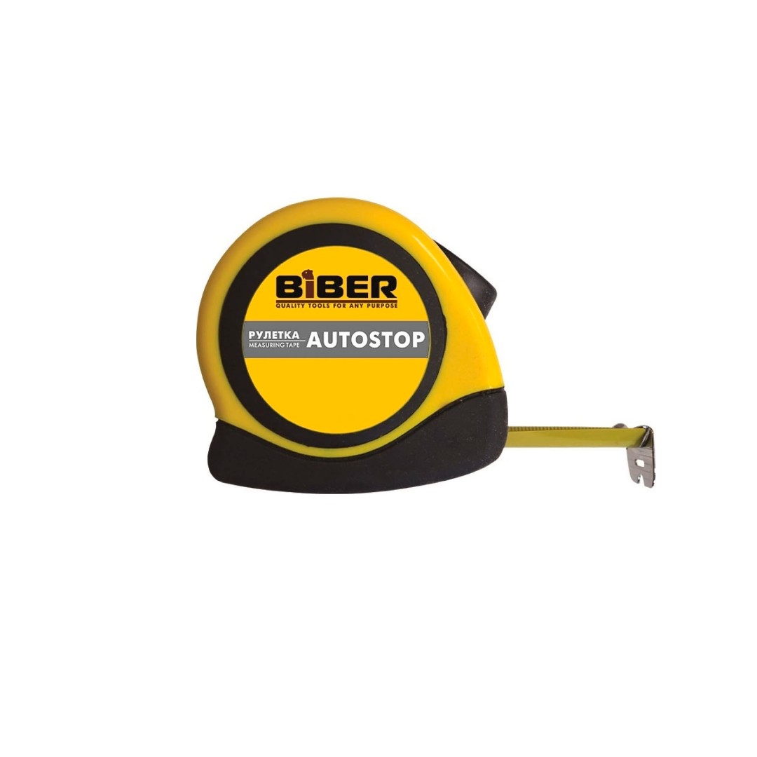БИБЕР Рулетка Autostop, обрезиненный корпус 7.5м х 25мм