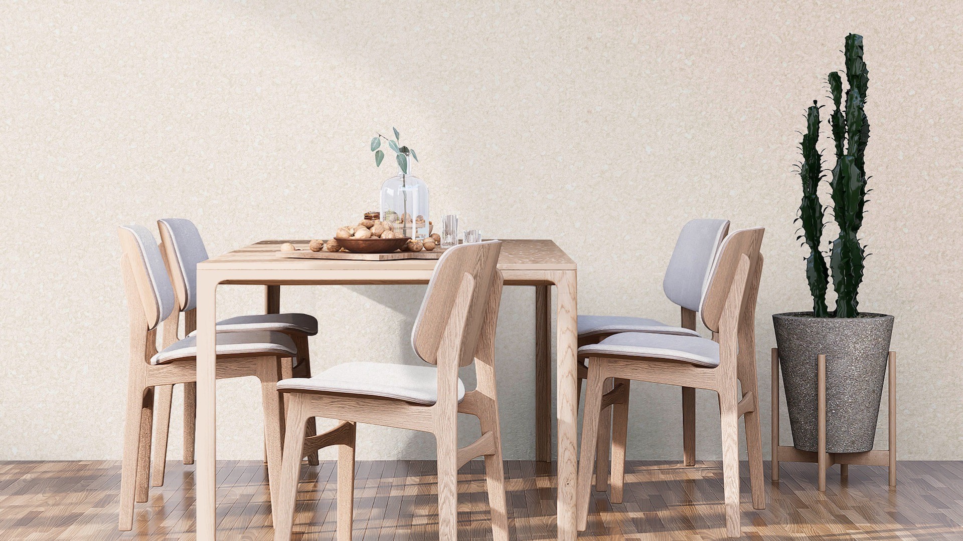 В линейке обоев DOMingo представлены и классические орнаменты, и более современные узоры, например, рисунок, имитирующий камень.