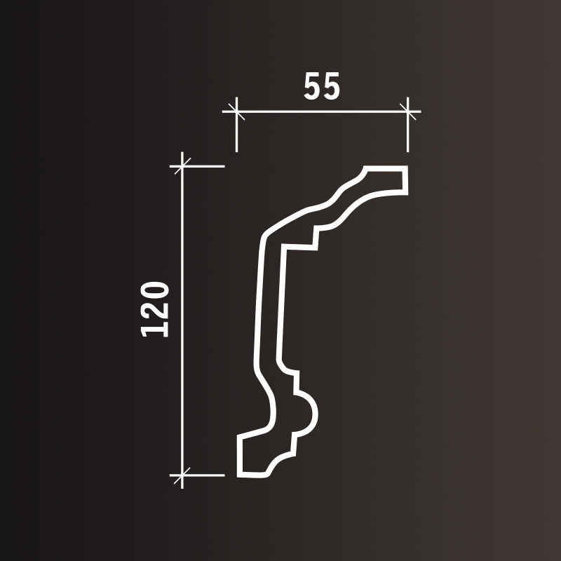 Карниз интерьерный белый 120х55х2000 мм 1.50.177 гибкий