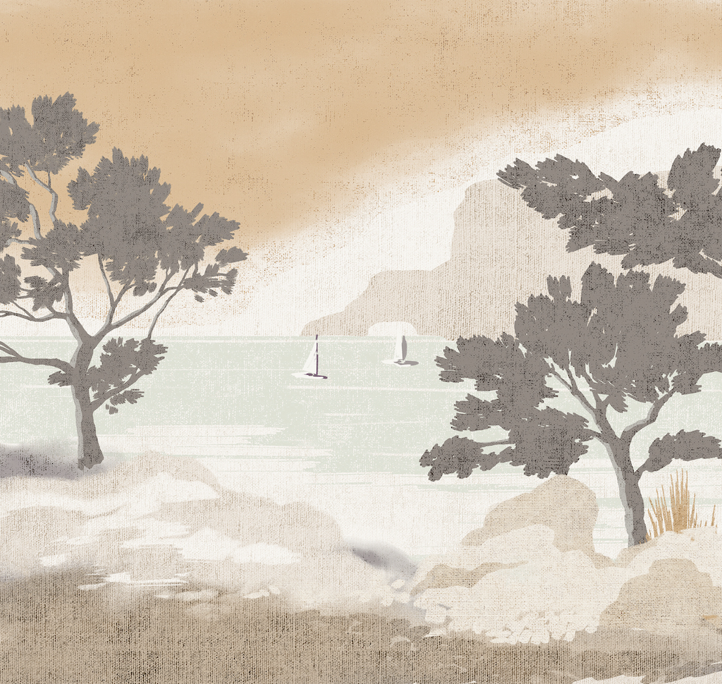 • РисунокПляж, Пейзаж, Деревья, Корабли