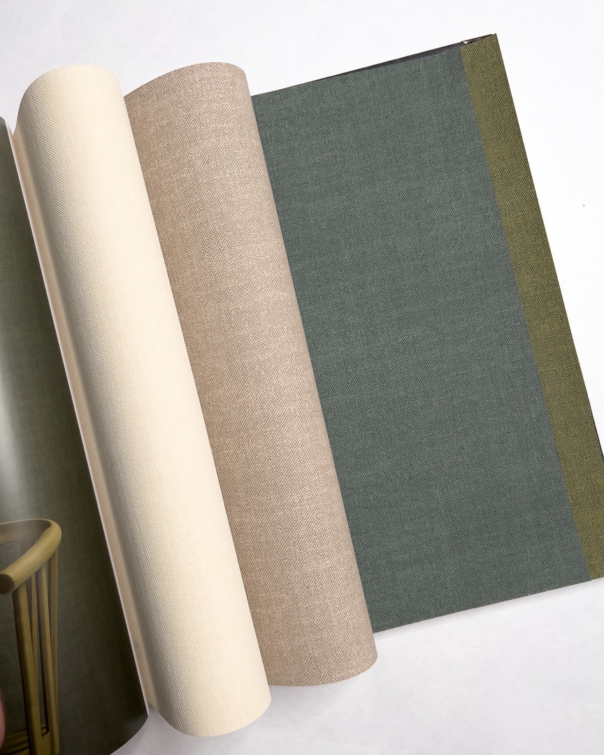 Shade — один из самых популярных каталогов бренда Loymina. Коллекция хороша сочными природными оттенками, такими, как красивый ирисовый или нежный оливковый. Обои представлены в нескольких фактурах: объемные бархатистые полосы, ткань и штукатурка.