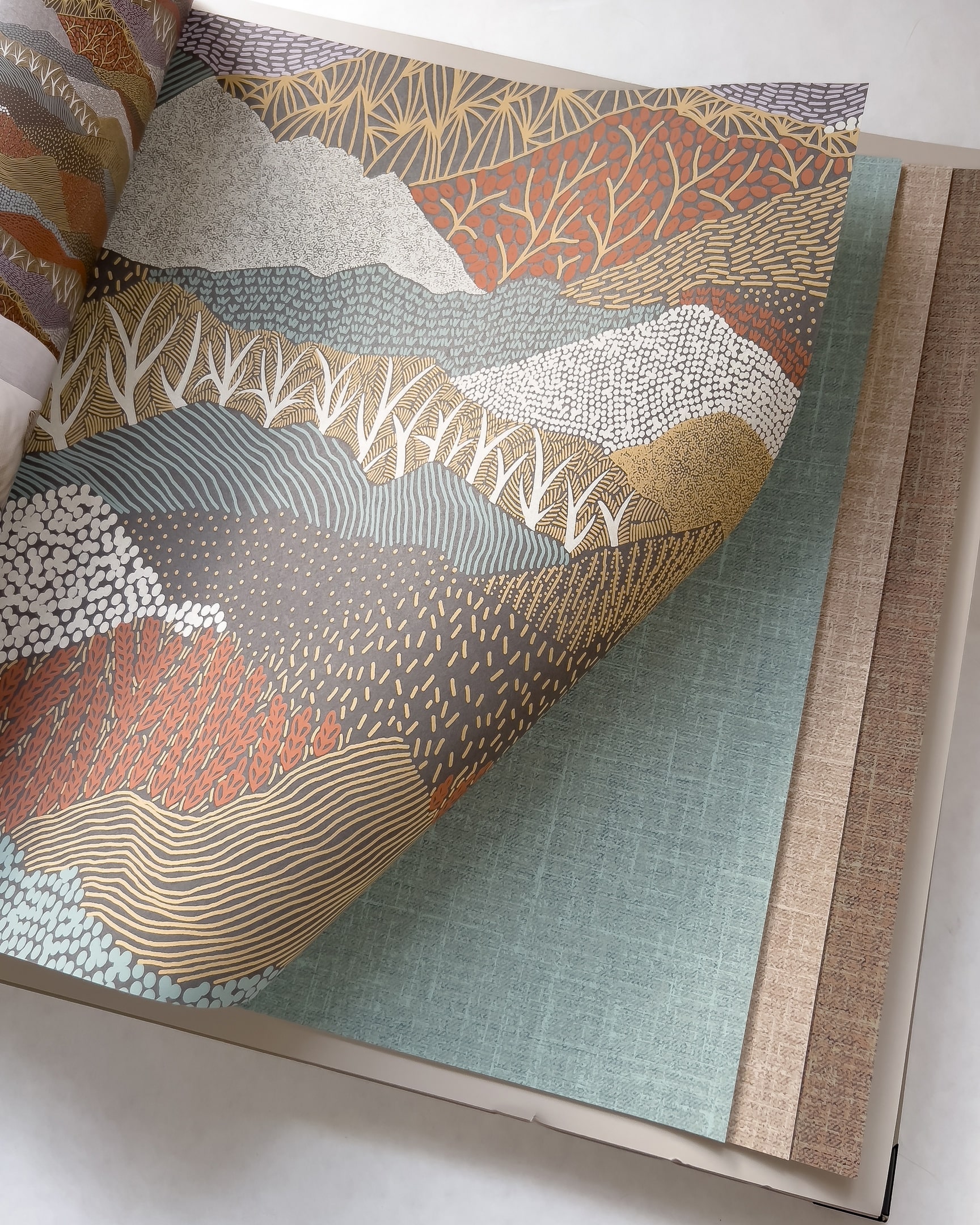 Источником вдохновения при создании каталога послужил, в том числе, стиль 60-70-х годов: отсюда смелые цветовые сочетания, плавность линий, простота форм. В остальном, коллекция не ограничена никакими направлениями: здесь царит чистое творчество и безудержная фантазия. Вы можете выбрать одну из сказочных историй, заключенных в обоях и панно: «Сагу о Холмах», «Сагу о Лесе», «Сагу о Городе», «Сагу о Луне», «Сагу о Нежности», «Сагу о Птицах», «Сагу об Элементах» или «Сагу о Яблоне».