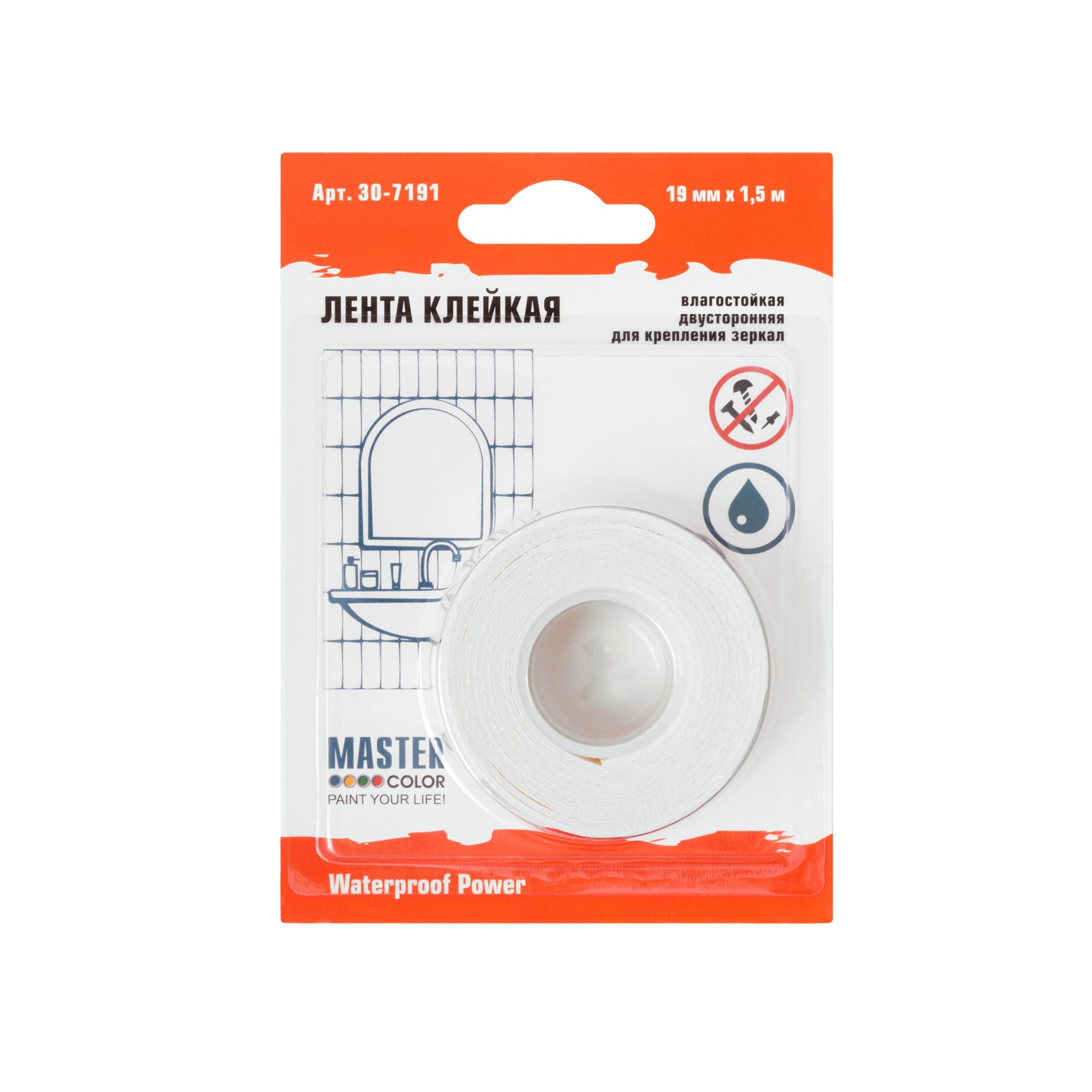 Клейкая лента Master Color двусторонняя для крепления зеркал Master Color Waterproof Power,