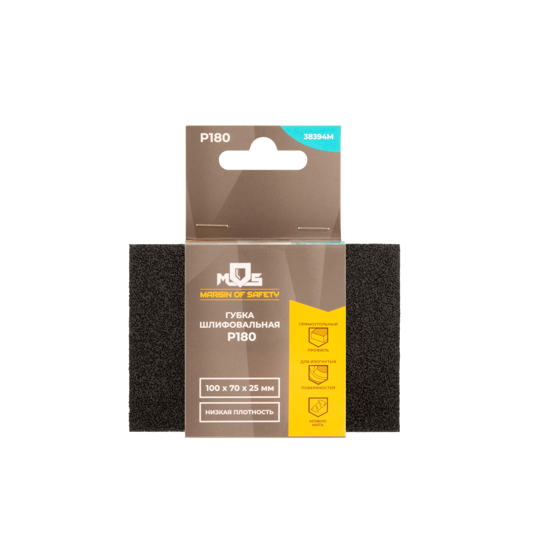 Губка шлифовальная Mos алюминий-оксидная, 100х70х25 мм, Р 180
