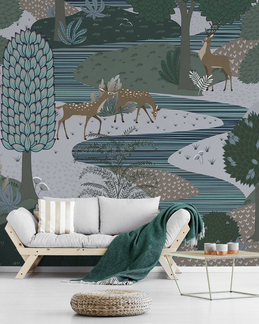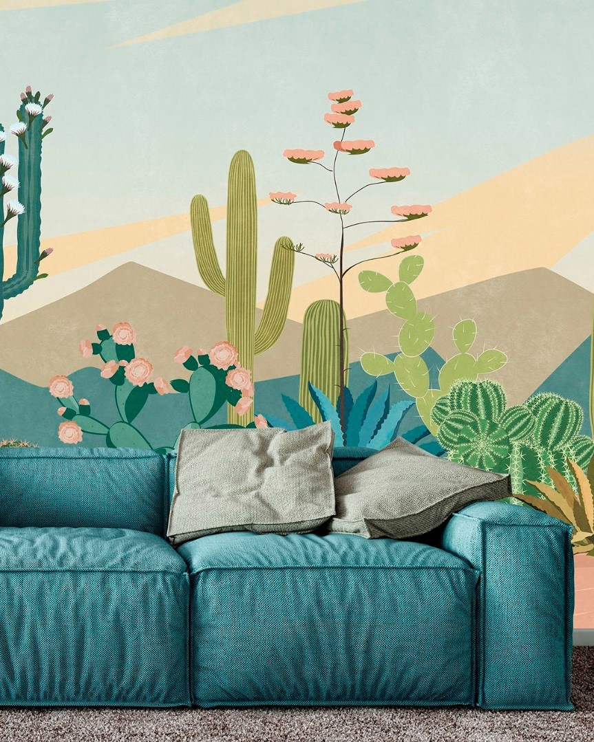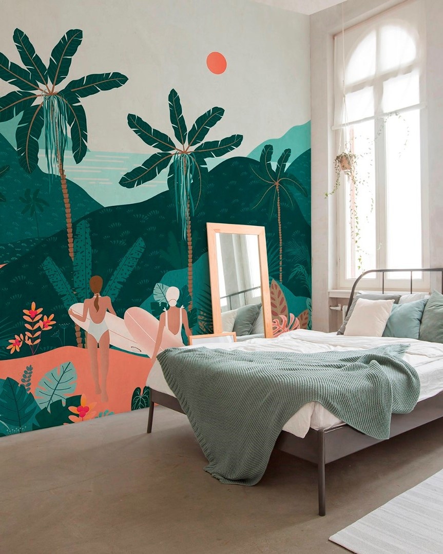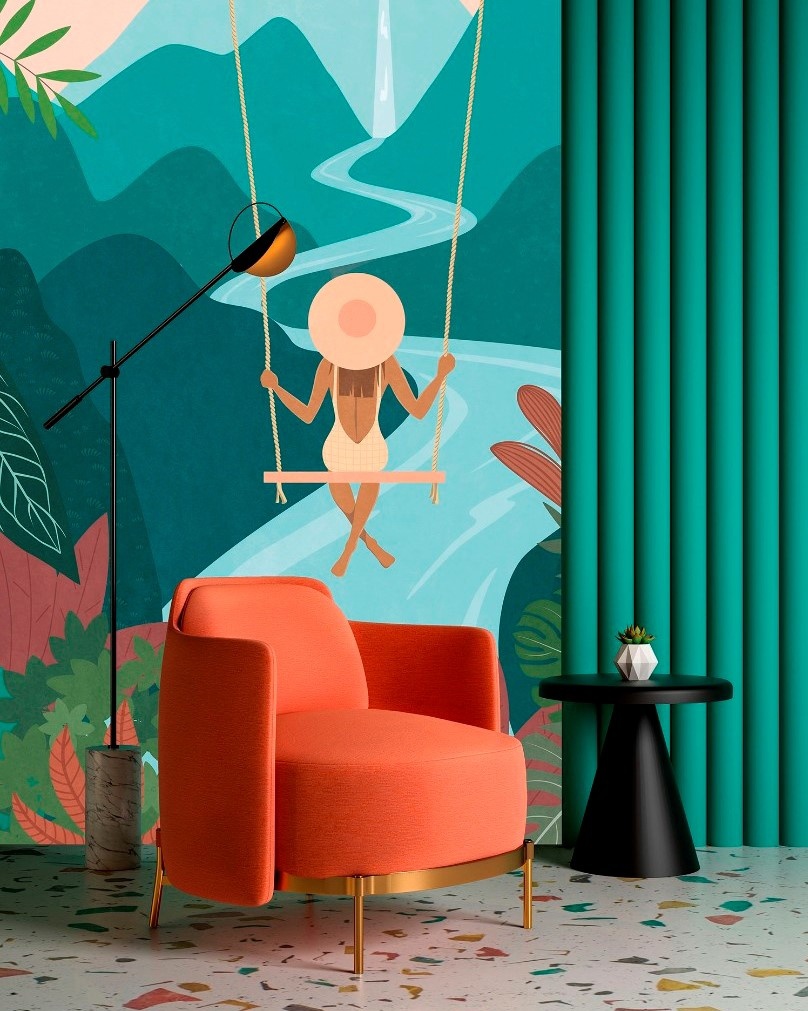 Природные сюжеты с отдыхающими людьми и животными погружают в атмосферу расслабленного летнего дня. Поддерживают этот эффект сочные леденцовые оттенки фресок.