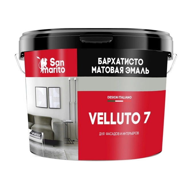 Эмаль San Marito Velutto 7 Z116AN27 бархатисто матовая для фасадов и интерьеров база А (2,7 л)
