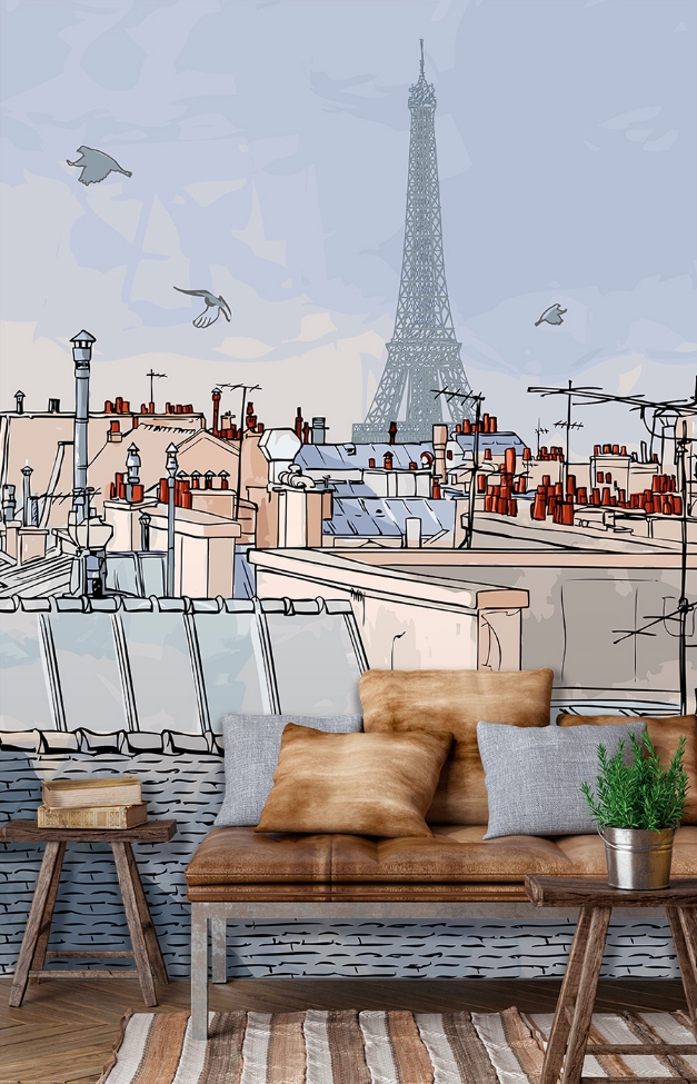 Панно изготавливаются на плотном флизелине с приятной фактурой — матовой и слегка шероховатой. Отдельного упоминания заслуживает цветовая гамма — нежные пастельные оттенки, как будто нанесены акварелью или цветными карандашами. Вы выбираете изображение в каталоге «Цветы» или «Город» и размер панно: ширину один, два или три метра, при стандартной высоте — 2,7 м.