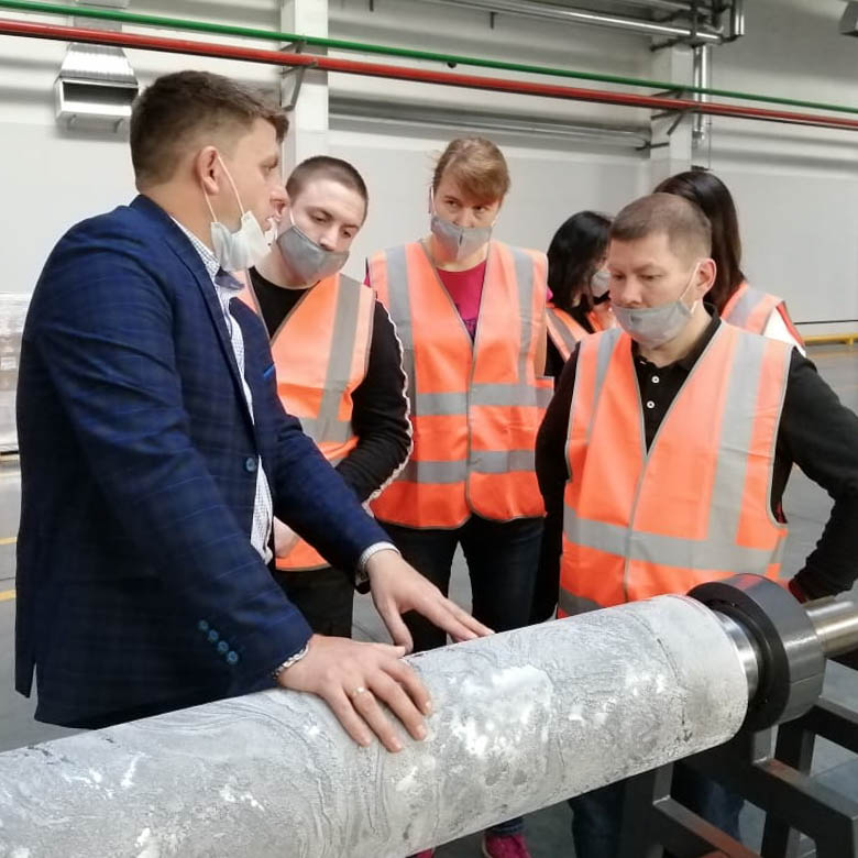 Компания много уделяет внимание безопасности труда, как своих рабочих, так и гостей. Нам провели инструктаж по безопасности, выдали каждому яркие оранжевые жилетки и каски, и только после этого провели в производственные цеха.