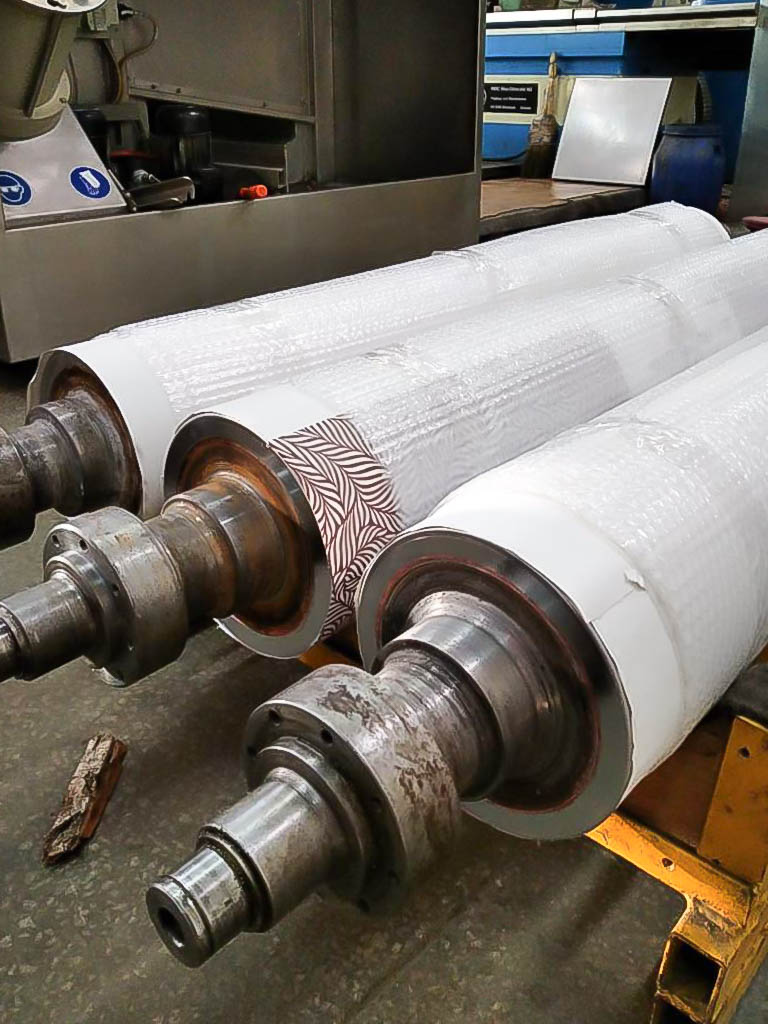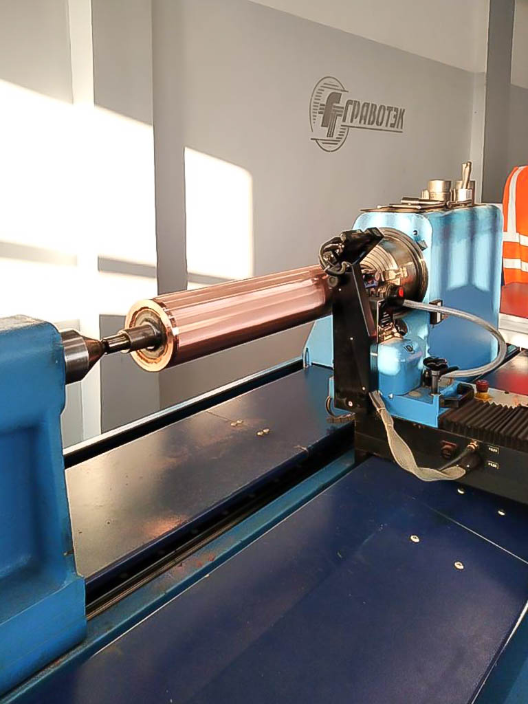 Нам довелось посмотреть, как изготавливают валы горячего тиснения. Изготовлением данной продукции занимаются специалисты высшей категории, на самом современном оборудовании. Гравировка валов производится гелиоклишографом, доработка рисунка происходит за счет выбивания алмазным штифтом. Результат доводится лазером или травлением кислотой. Гравировка рисунка на валу горячего тиснения происходит ступенчато и поэтапно.