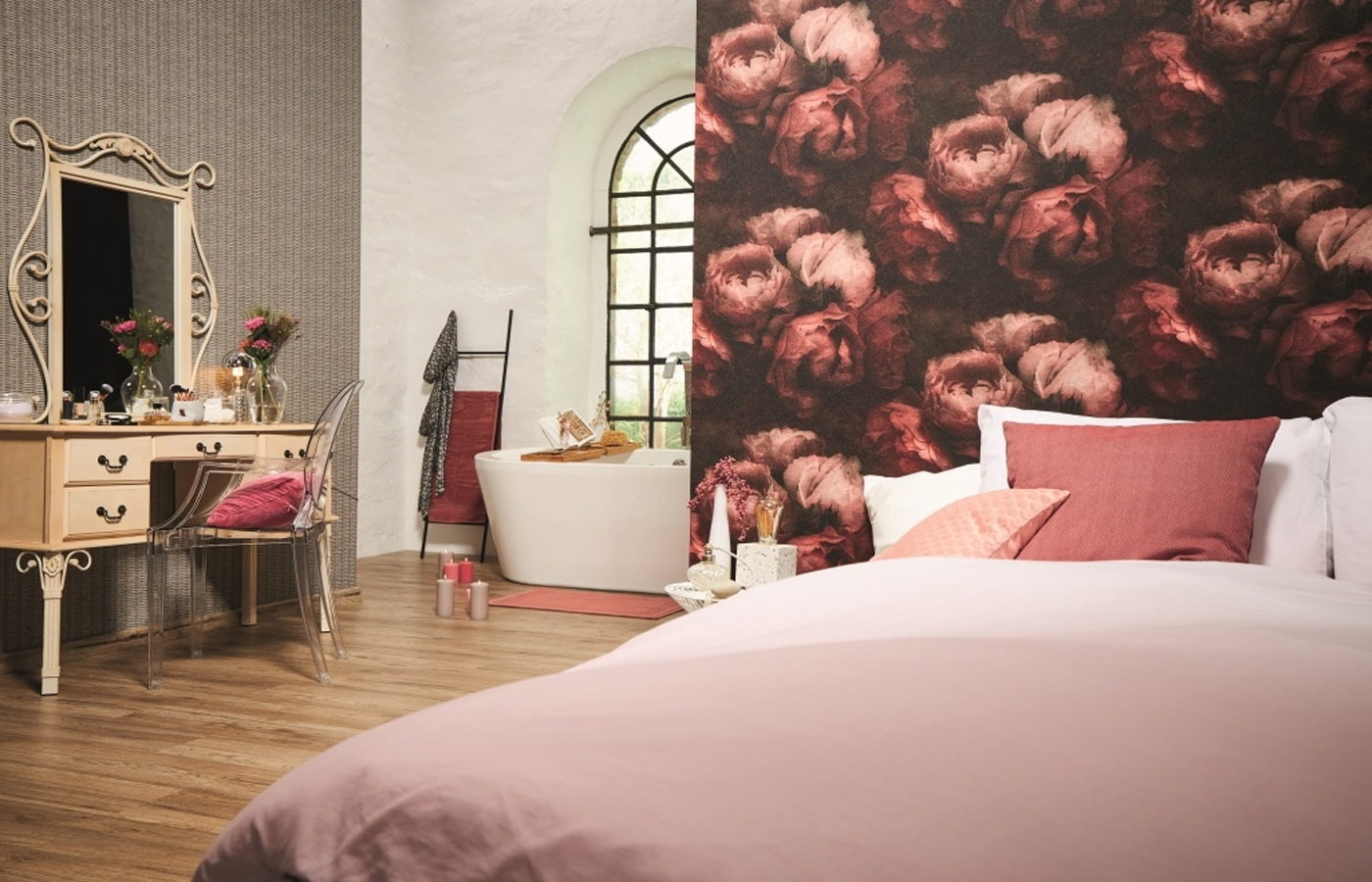 Цветочные обои могут стать стилеобразующим решением интерьера, с ними хорошо сочетается светлая однотонная мебель в бежевых или пастельных тонах. Обои в цветочек — не просто модная новинка, но еще и отсылка к истории возникновения обоев. На первых обоях рисовали именно цветочные букеты, многие художники «подрабатывали» разрисовыванием обоев для состоятельных клиентов. В наше время все гораздо проще: каждый может позволить себе декорировать стены цветочными обоями.