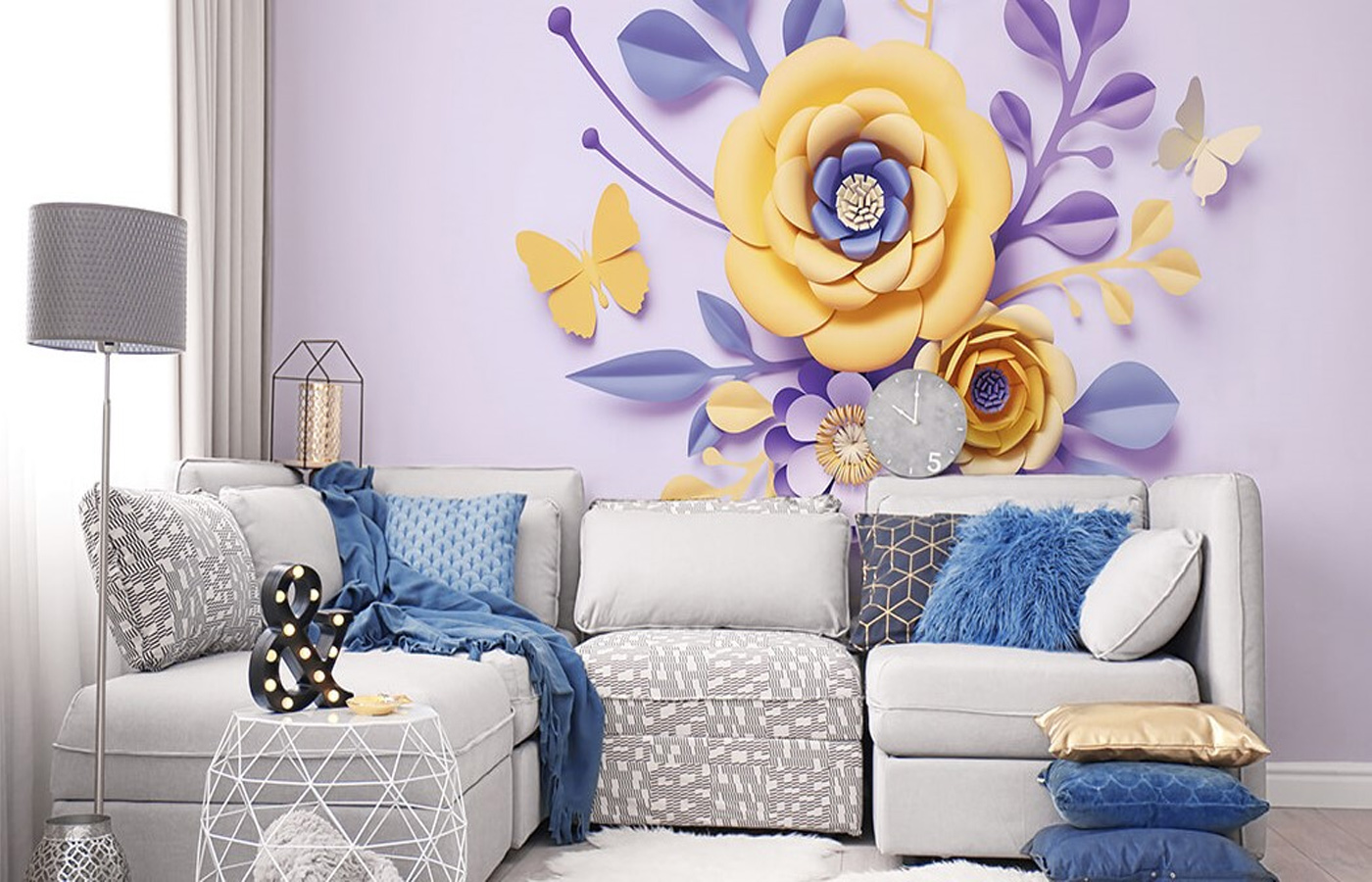 Объемные цветы напоминают поделки в стиле скрапбукинг и отлично подойдут для оформления гостиной, детской или спальни. 3D обои — это очень интересное решение!