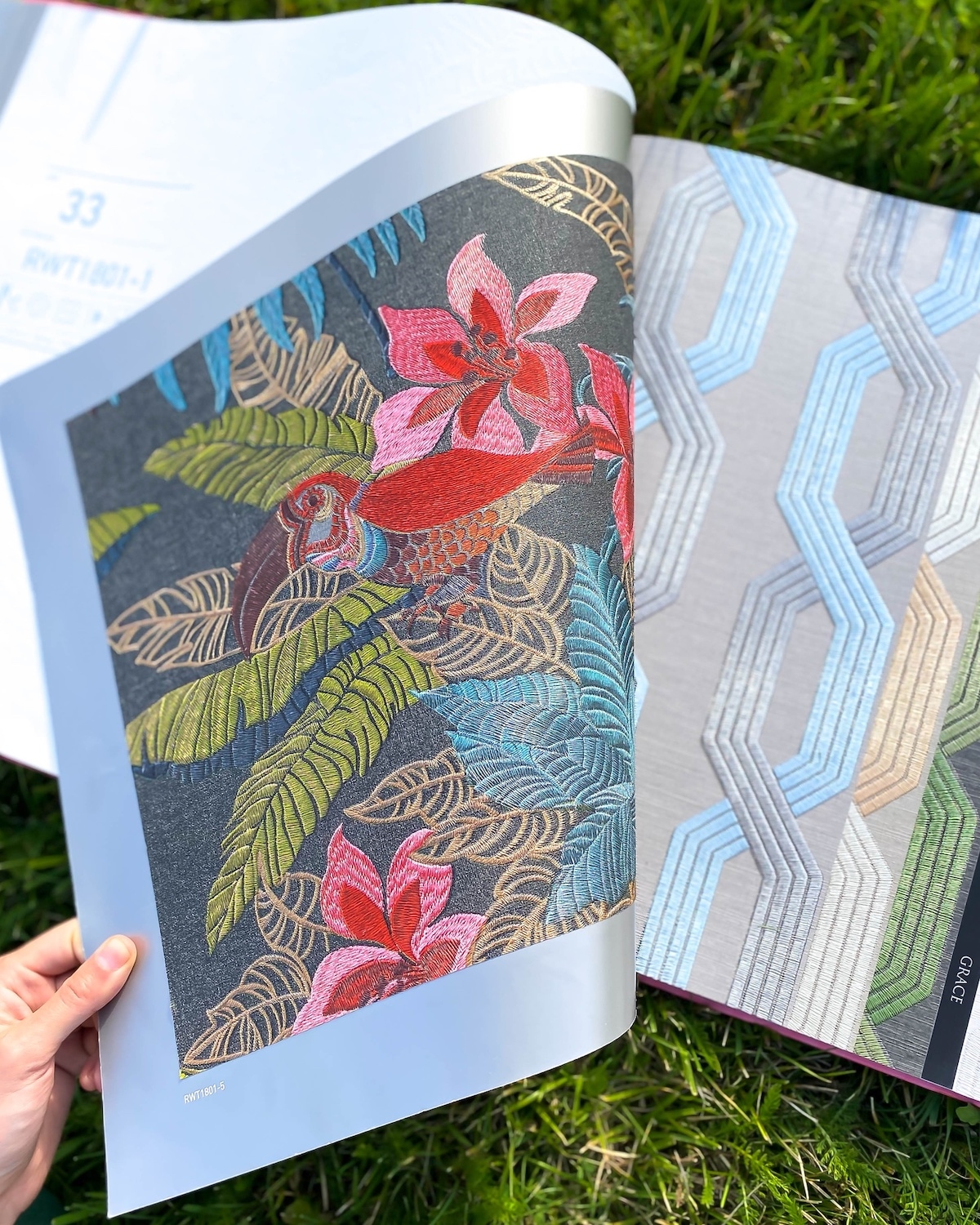 Большая часть обоев из коллекции Grace выглядит так, будто их ночами вышивала Марья-искусница. Аккуратные «стежки» складываются в решетчатые орнаменты и красочных туканов, среди тропической растительности. Обои будет интересно сочетать между собой, из-за нетипичной цветовой гаммы: вкусных оттенков мандарина, замерзшего моря и пыльной розы.