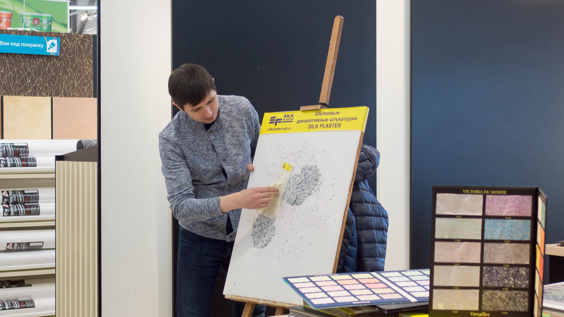 В «Обойкине» на Руставели 43 происходило нечто знаменательное: первый этап «слепого» тестирования премиальной краски. В тесте участвовали шесть брендов краски, названия некоторых из них, Вам наверняка знакомы